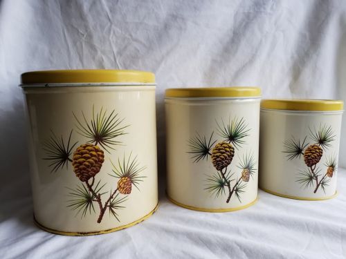 3 vintage 1950s decoware metal kitchen storage canisters
