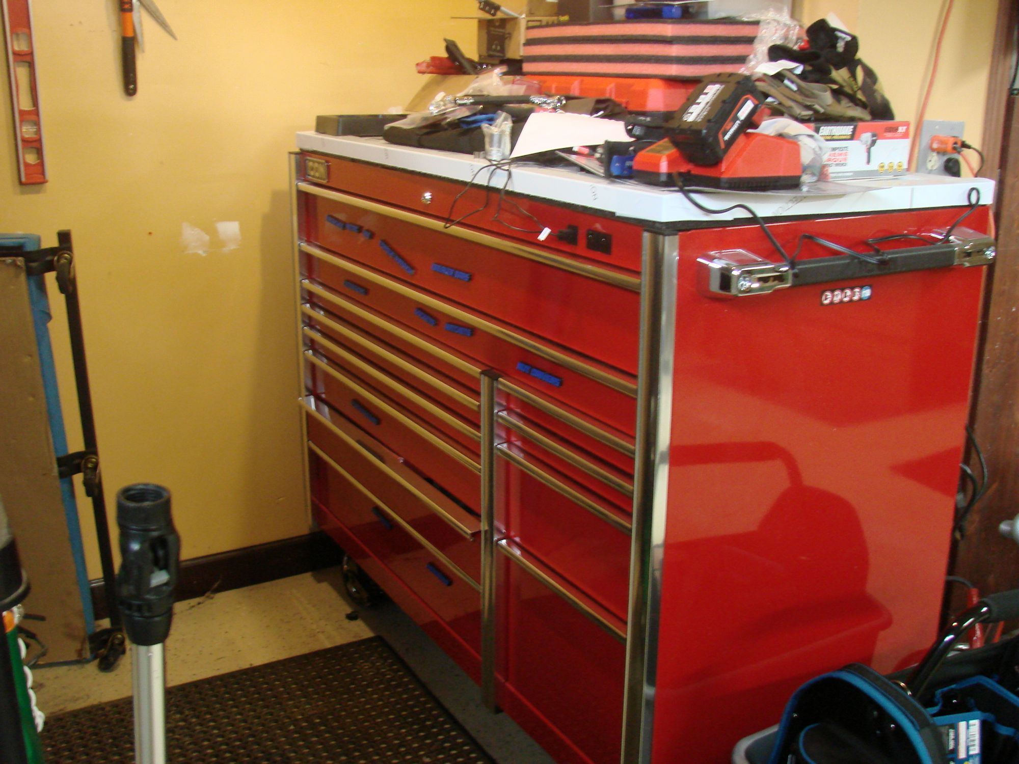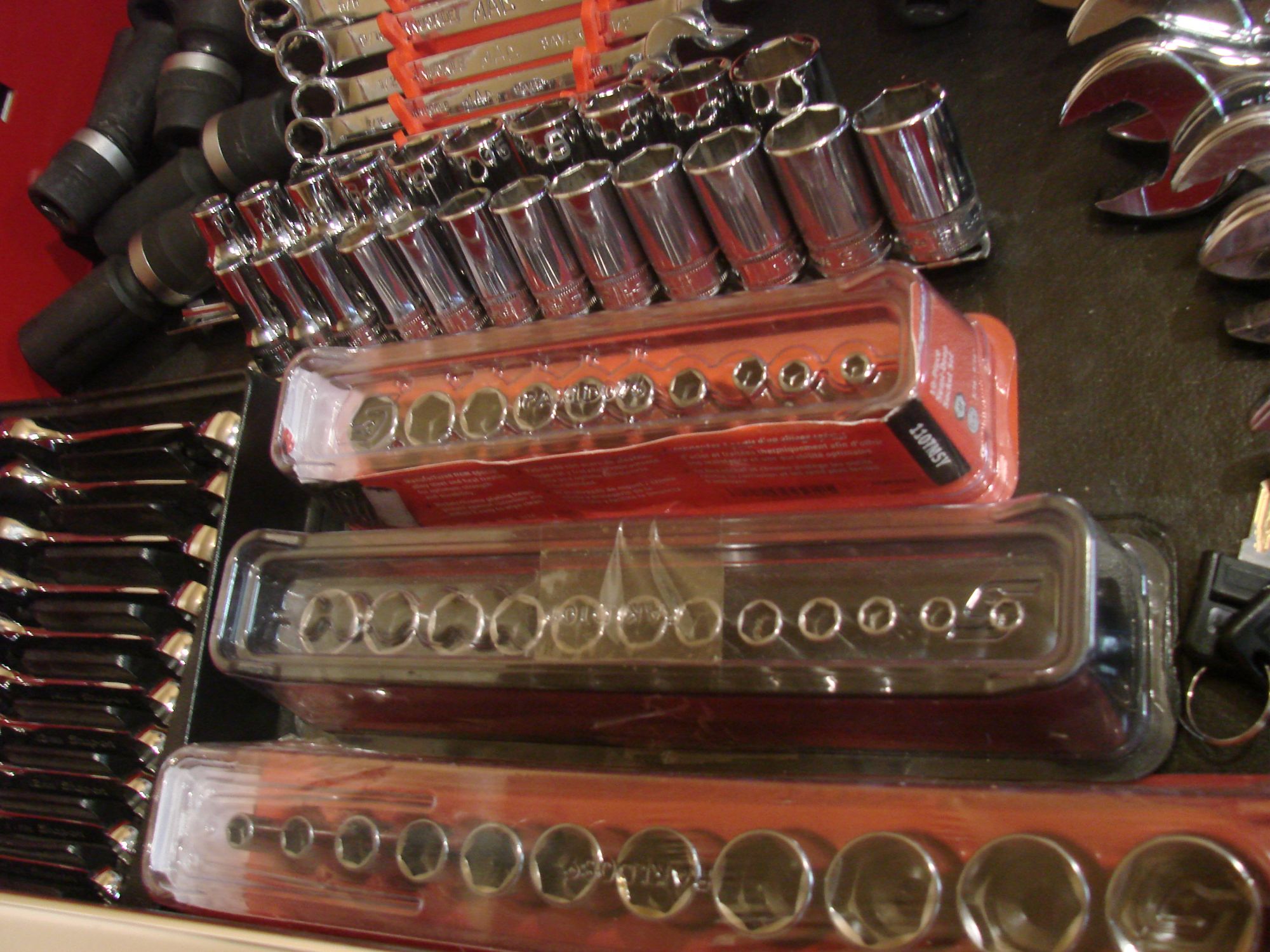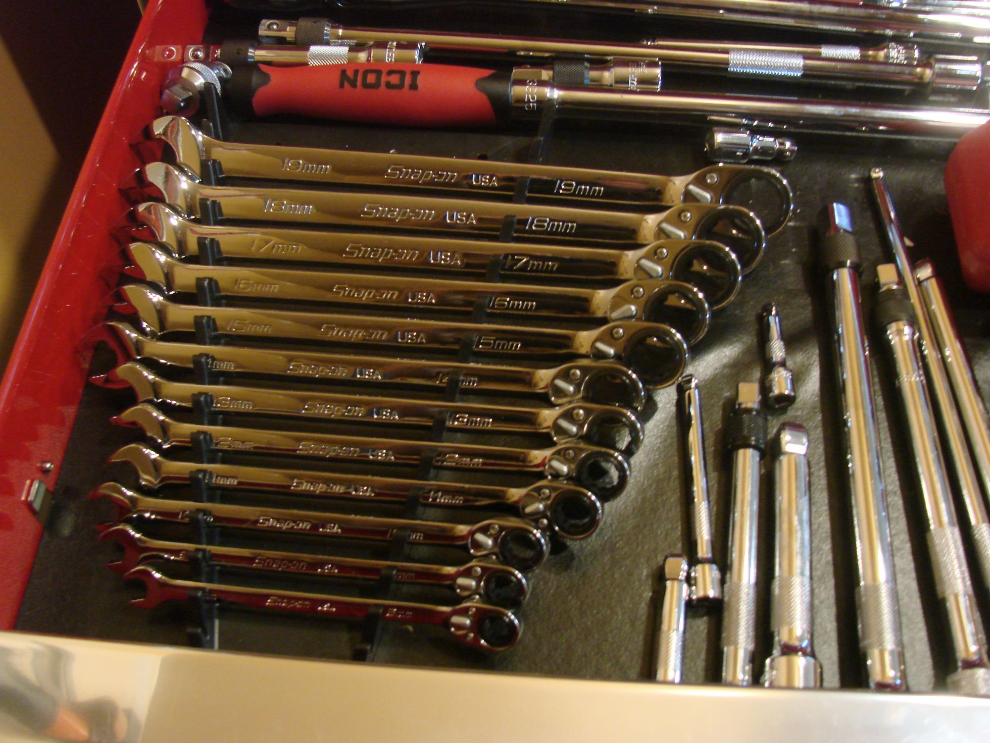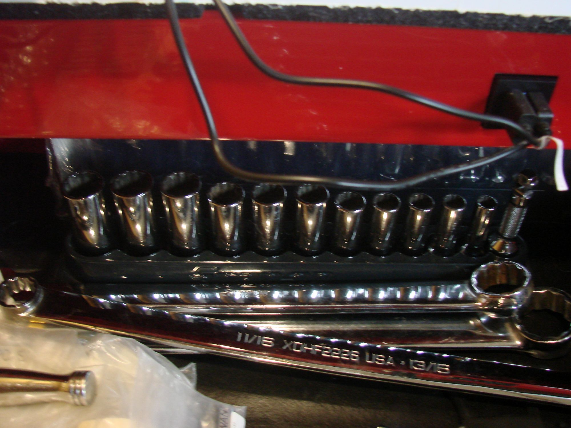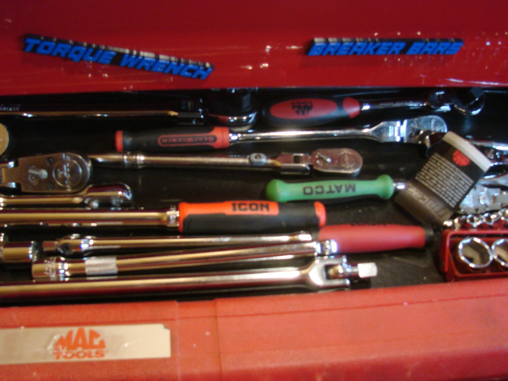 in Icon 56" roller, with stainless top, new, all the hardline tools are Snap-On and Mac, wrenches, ratcheting wrenches, sockets, ratchets, sockets, screwdrivers, etc., 1/4", 3/8", 1/2" drive shallow, semi deep 6 and 12 point, pliers, 3 torque wrenches, pry bars, new Power Probe 3 1/2" impact dockets, deep and shallow, SAE 3/8"- 1-1/2", metric 10mm to 36mm, Snap-On and Mac flex head wrenches, FHO-FHOM series, must seem to appreciate, most are sealed in their cartons, also cordless power tools, Ingersoll Rand 1/2" impact gun kit, Milwaukee 3/8" impact gun kit, Earthquake 3/8" cordless ratchet; air tools, new 1/2" impact gun, air hammer, cutoff tools, floor jack, 3 pair jack stands, too much more to list, moving, can't take with me, over $26,000.00 invested; +(LARKSVILLE) All Reasonable Offers Considered