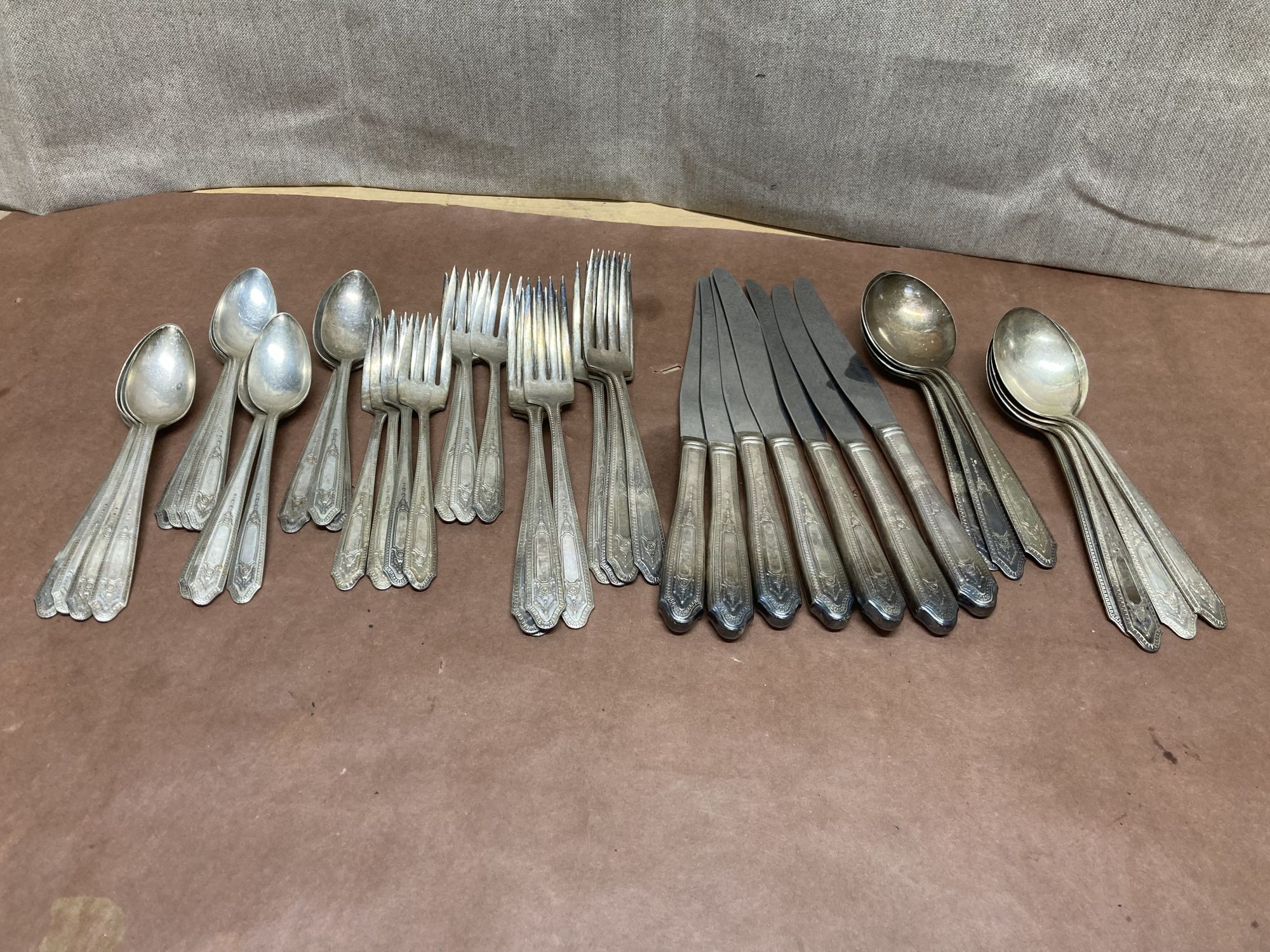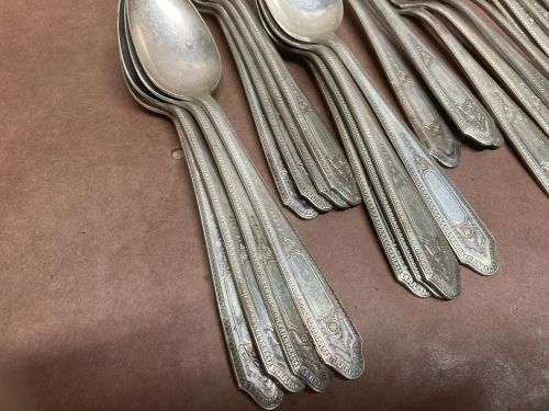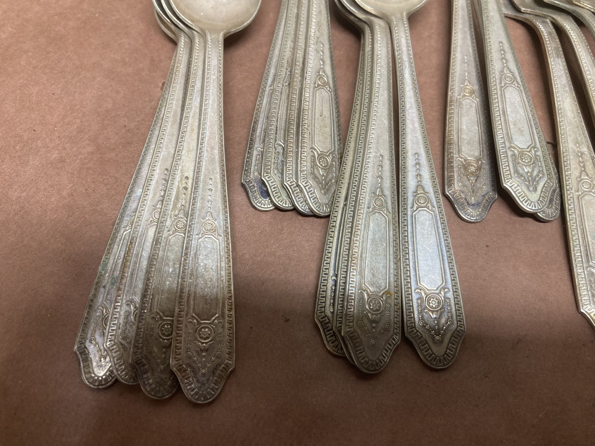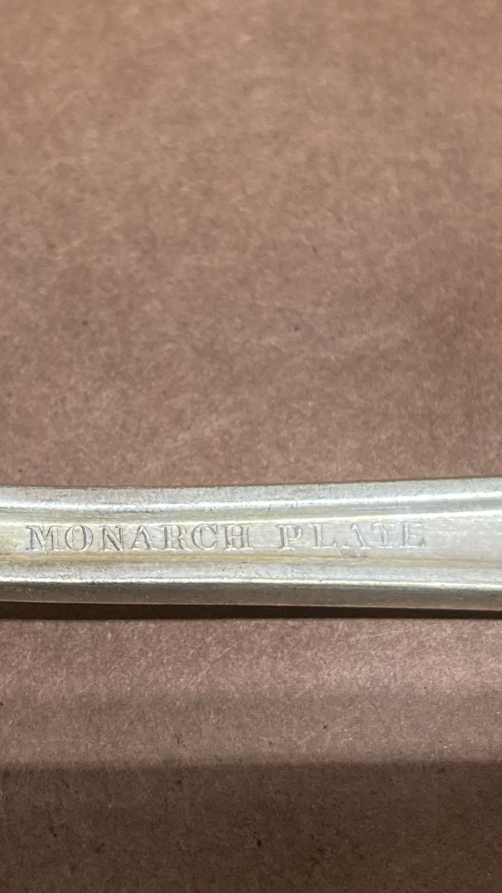 Monarch, silver plated, containing 46 pieces, 15 spoons, 8 salad/ dessert forks, 8 dinner forks, 7 knives, 8 soup spoons. +(HARDING) free