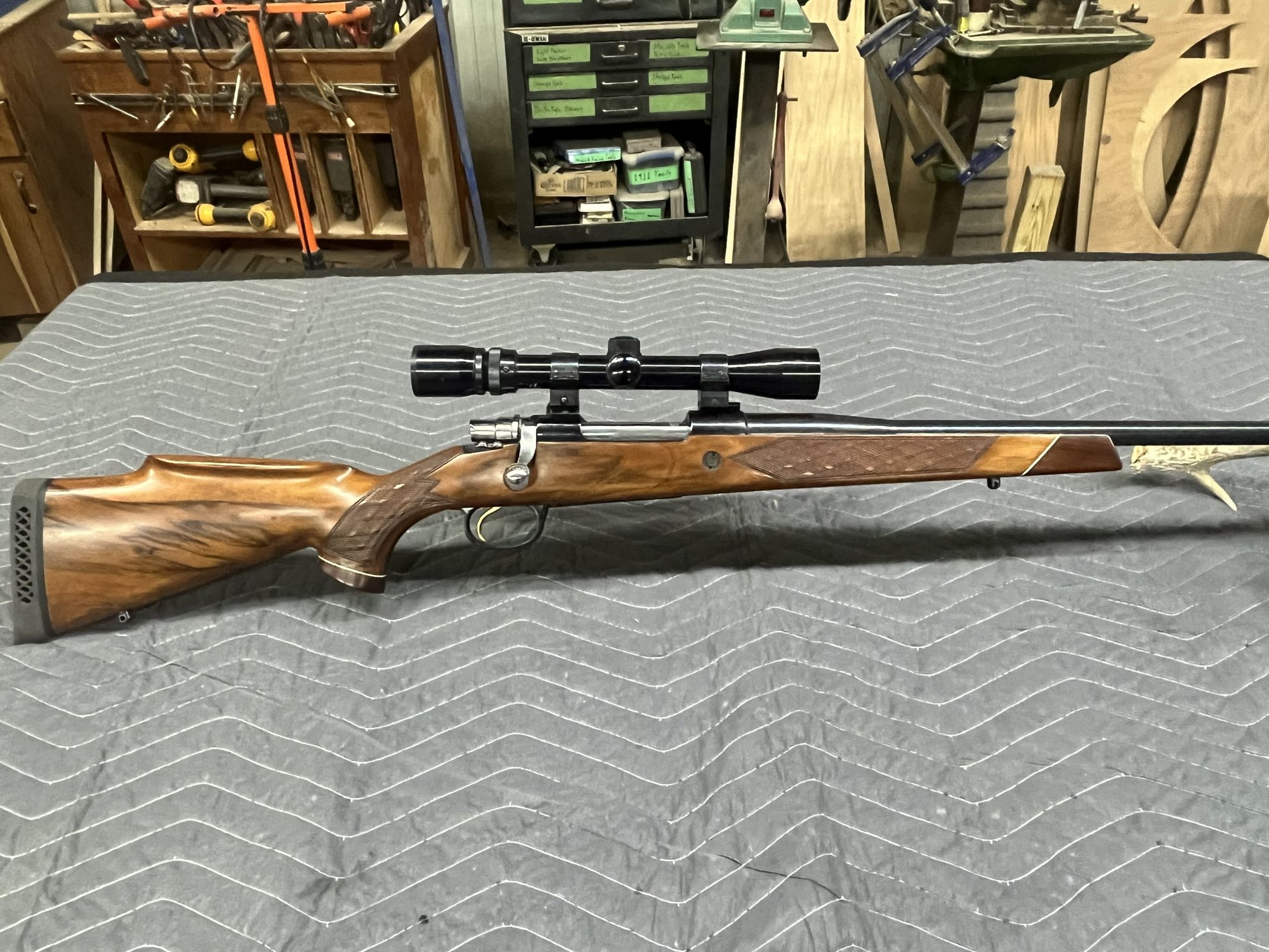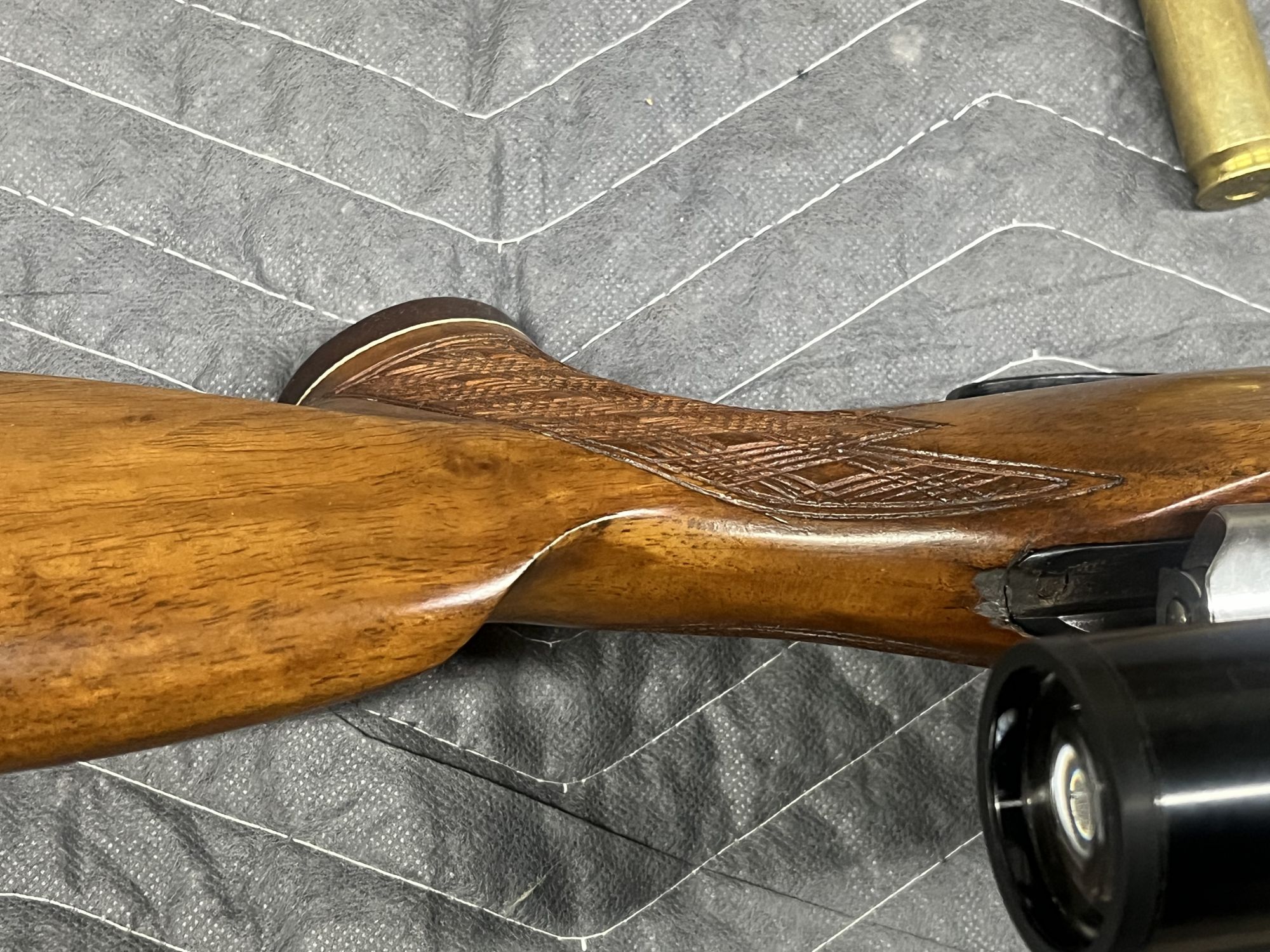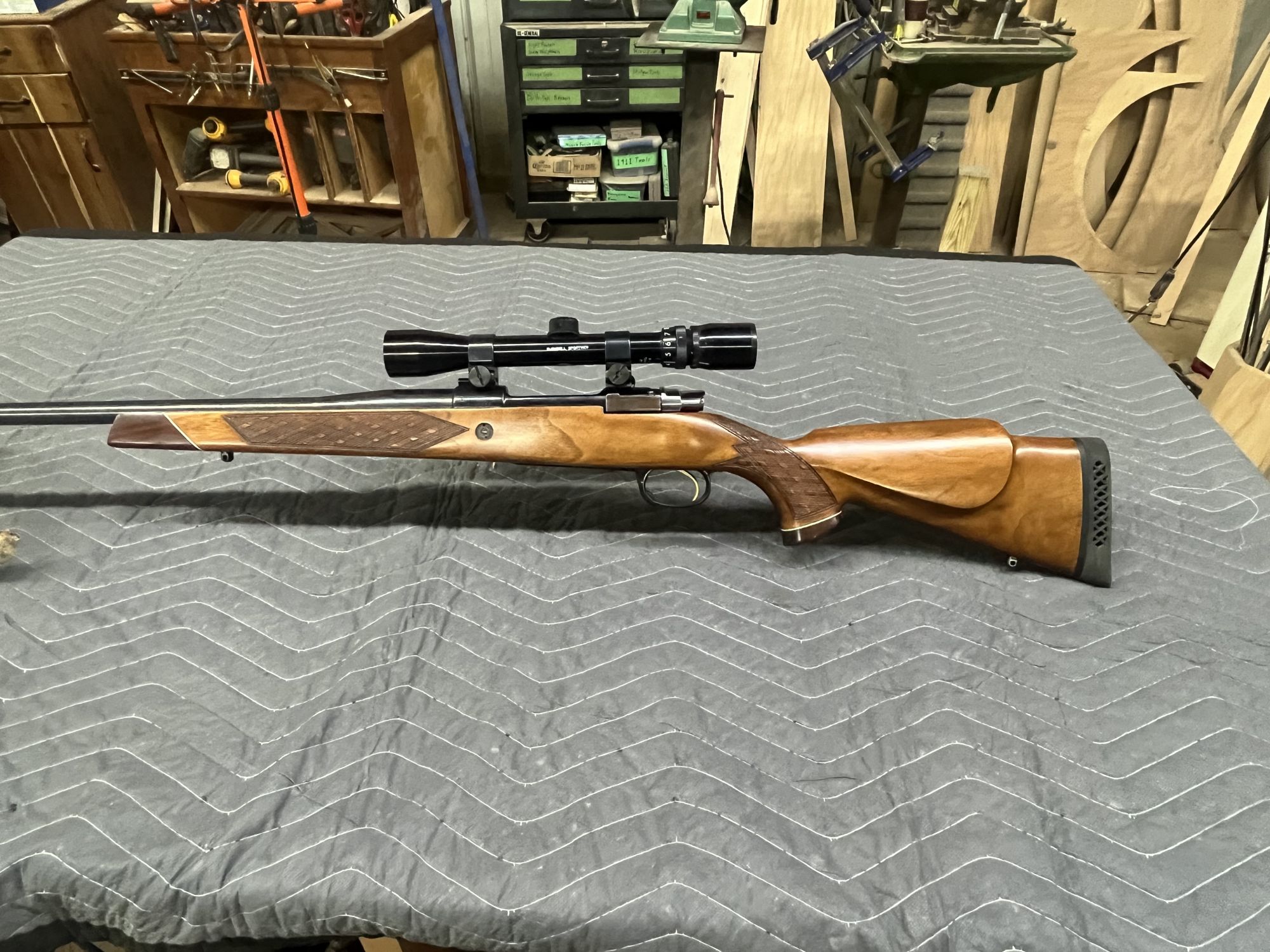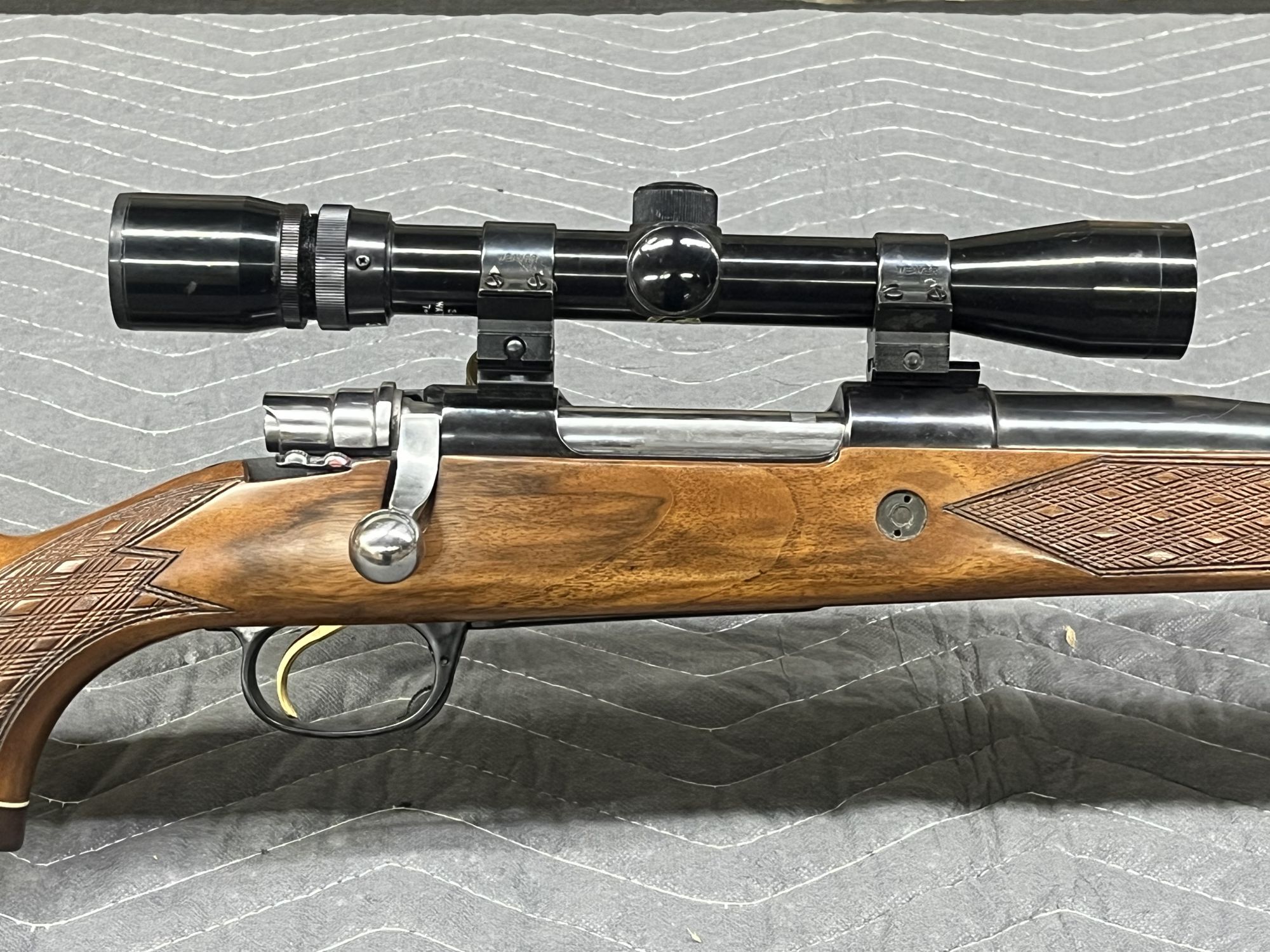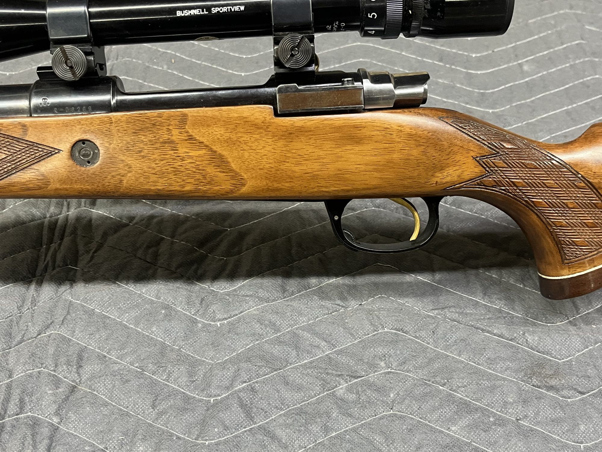 Well made British commercial Mauser, figured walnut stock, Rosewood tip and cap, Bushnell 3-9x, excellent condition, ammo available+(MONTROSE)
