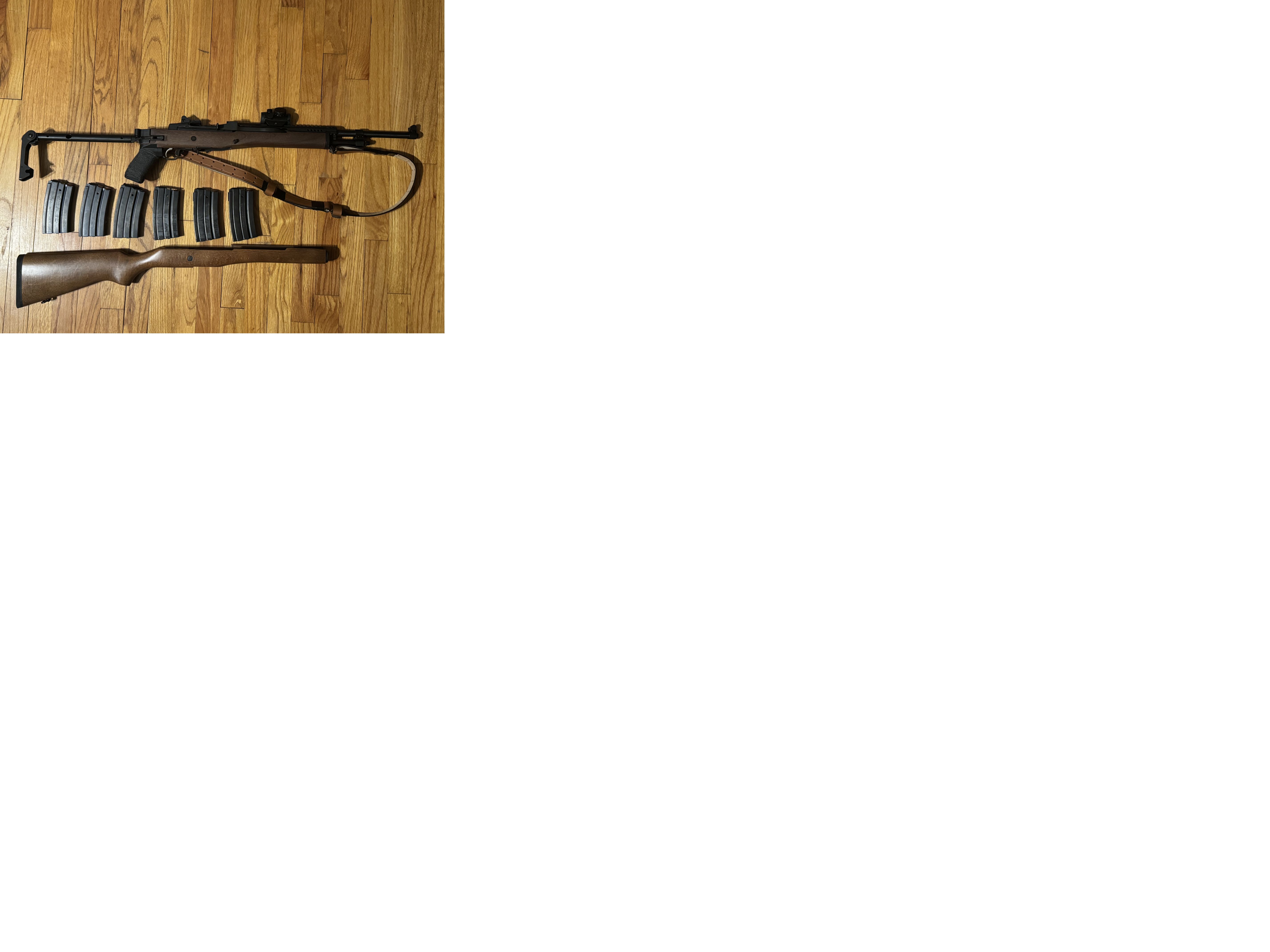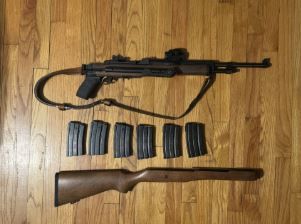 223/556, folding A-Team stock, red dot and peep sites, (6) 20 round mags, all original parts if wanted to convert back. Call/Text Jon +(STERLING)
