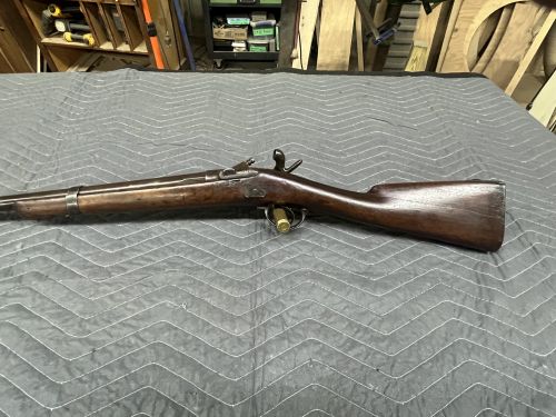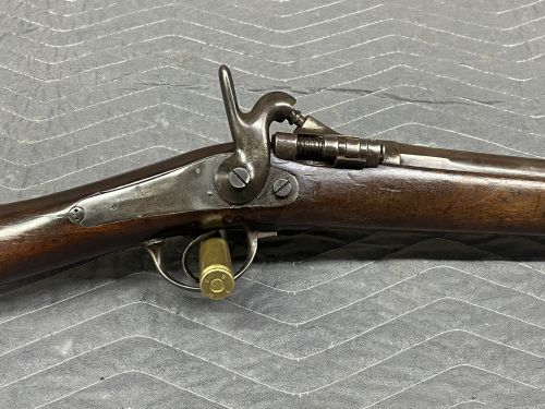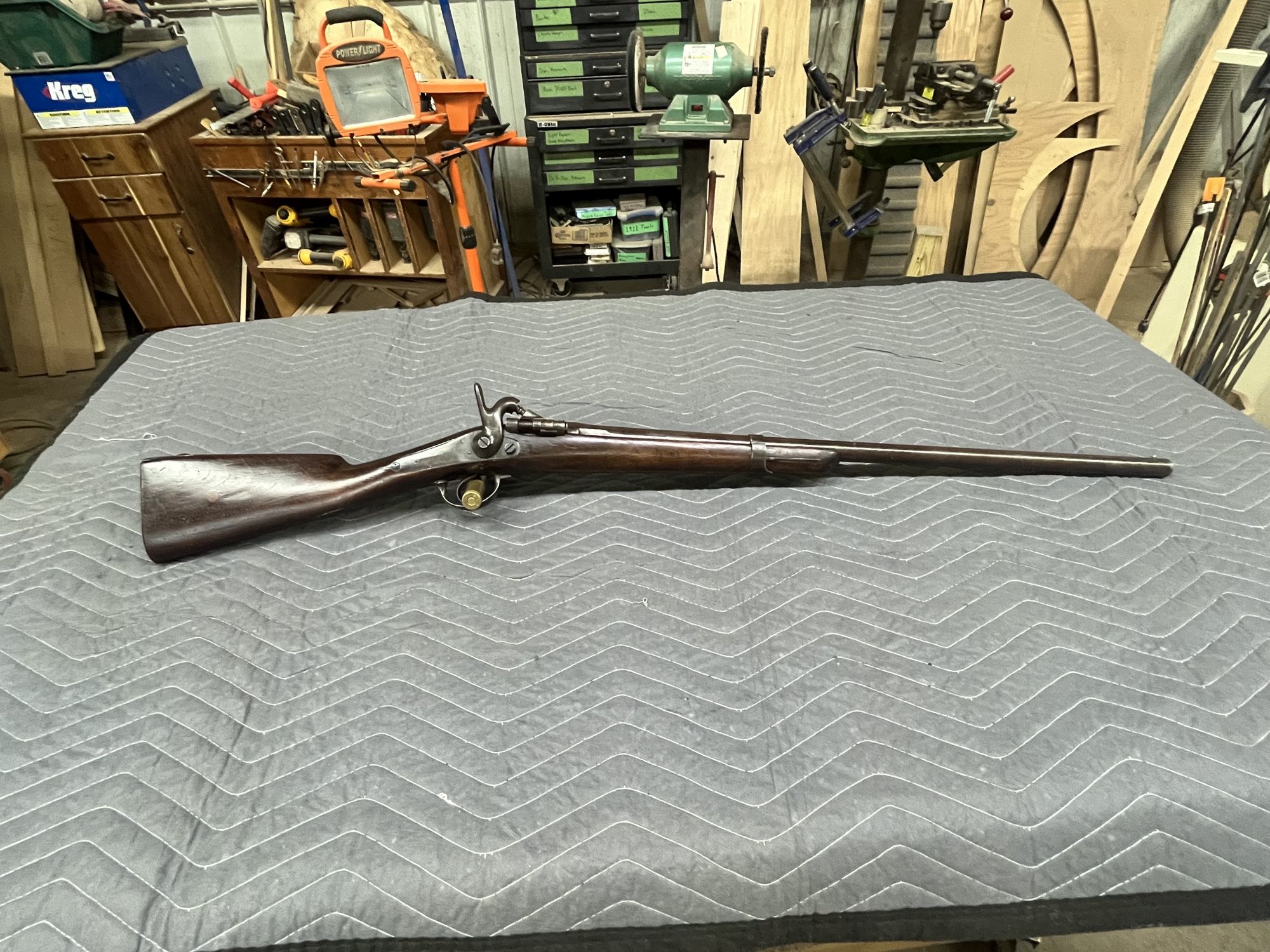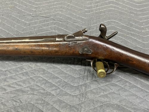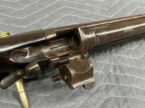 Interesting Belgian 1800's Zouave conversion, good tight Snider-ish type action, 28" barrel, still has holy water plug in stock, if you want something big, funky and interesting to shoot, this is it. +(MONTROSE)