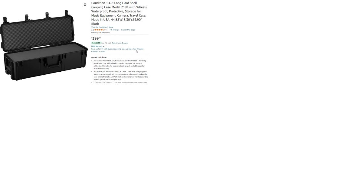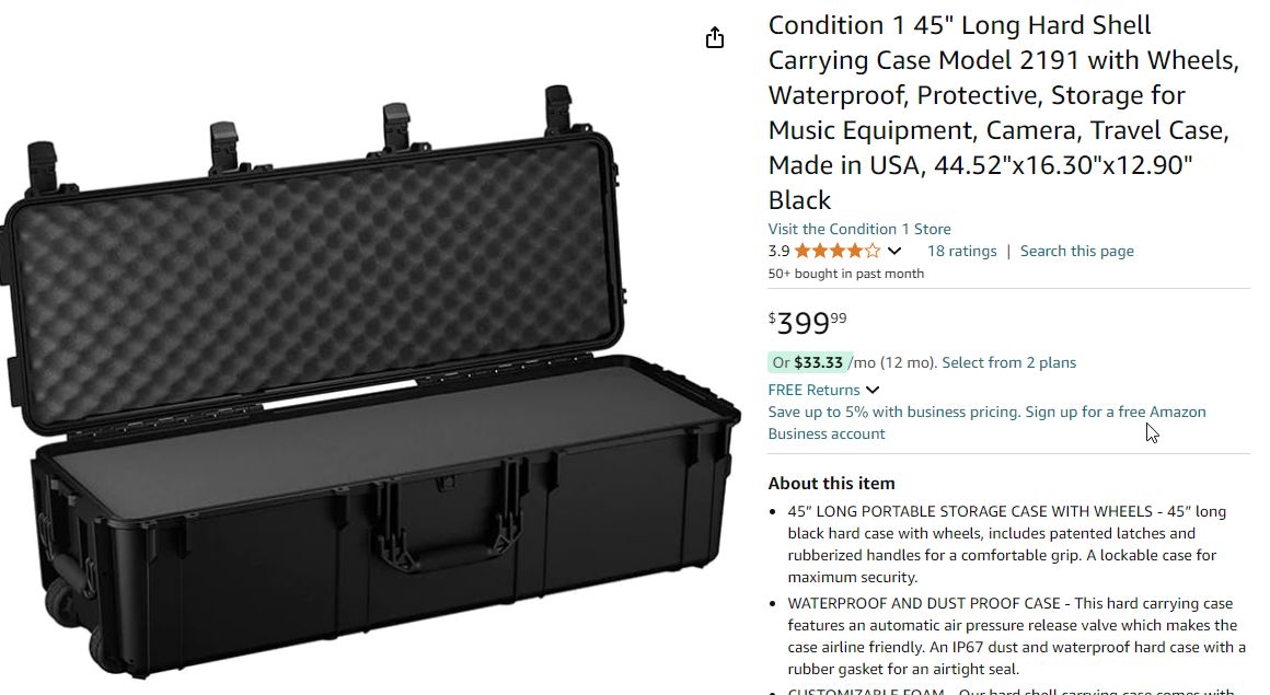 will accept trades, new, in box, holds around 4 rifles. heavy duty, with wheels, waterproof, protective storage, good to protect anything, brand Condition 1, model #2191, made in USA, 44.52"x 16.30"x 12.90", originally $400.00. Call or text +(SHICKSHINNY)