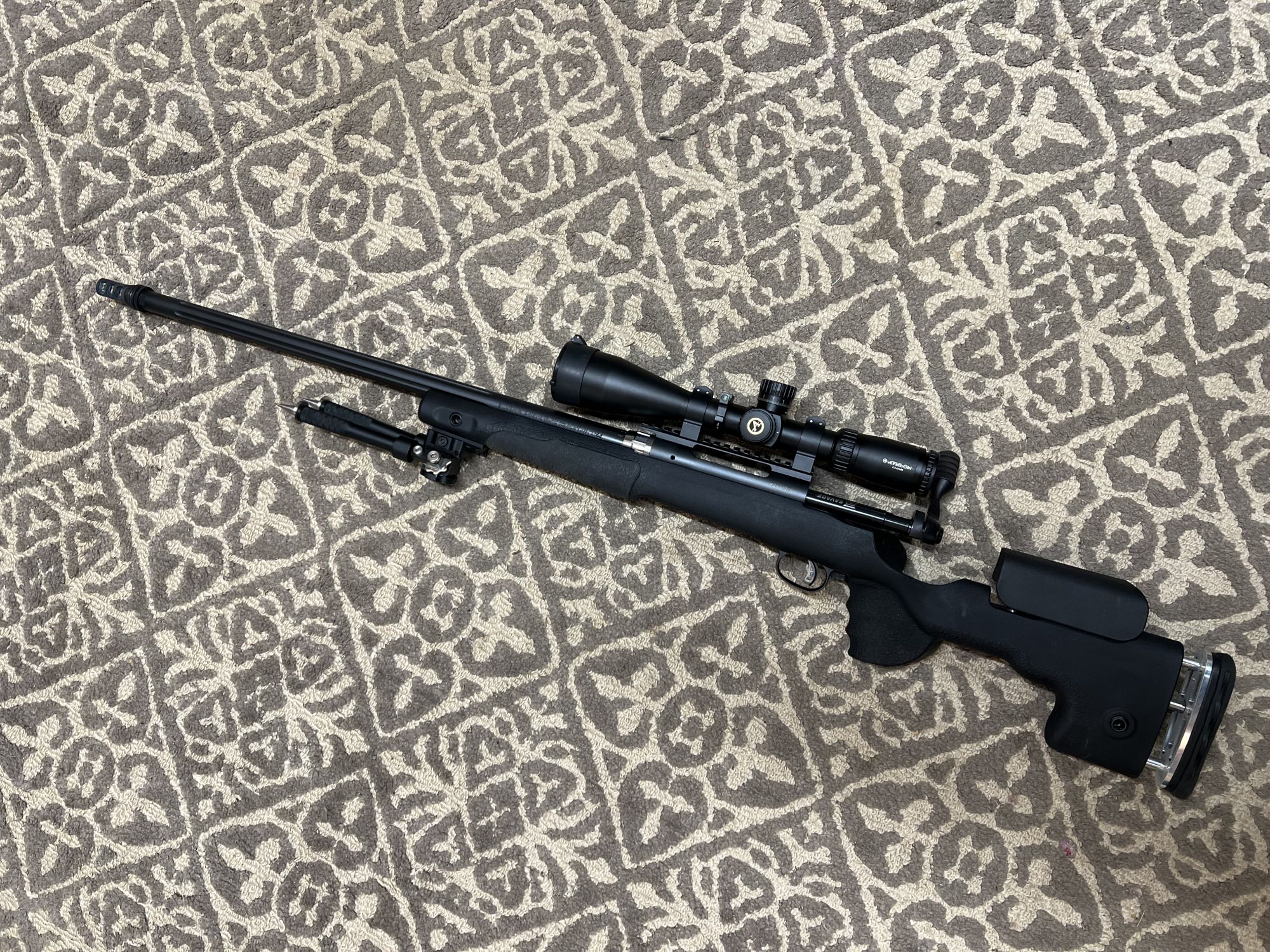 Savage FCP-SR 308 cal. 24” barrel Trued recoil lug and barrel nut. GRS adjustable chassis. 20moa rail, warne rings, Athlon Ares BTR 4.5-27x50 scope bipod 2 magazines all included, +(WIND GAP)