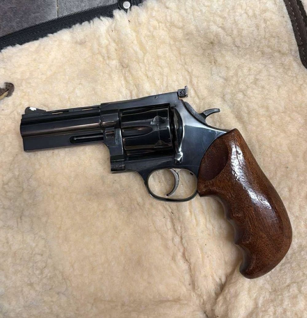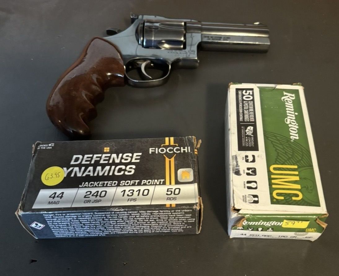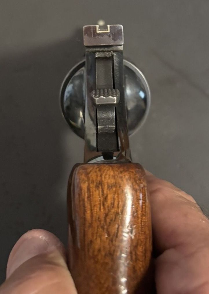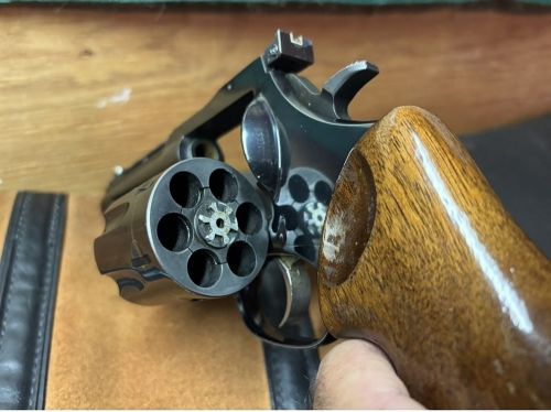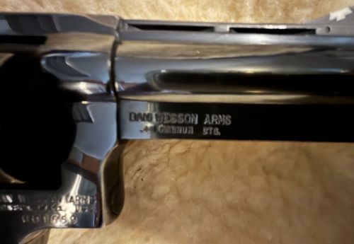 large frame, 4" interchangeable barrel, adjustable rear site, ventilated rib, mfg. in Monson, Mass. late 1970s - early 1980s, +(DUNMORE)