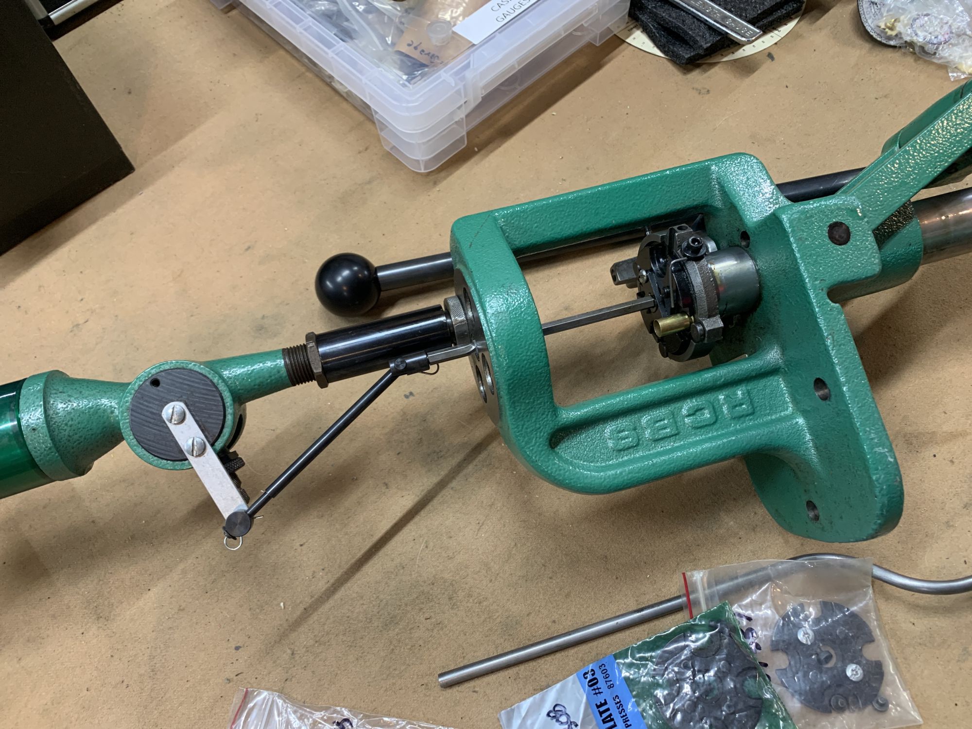 9mm, hard to find plate, 45/ 308, 38/ 357, small and large primer, arms and tubes, spare parts, plastic clutch part worn and out of sync, complete new clutch parts kit included for rebuild +(STROUDSBURG)