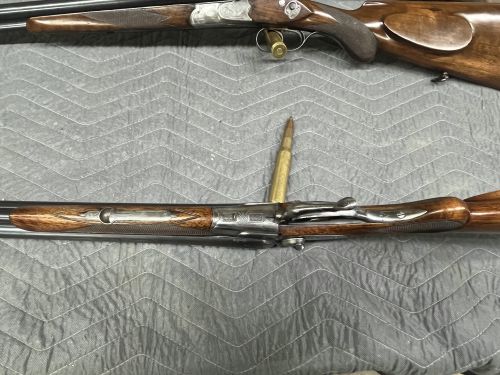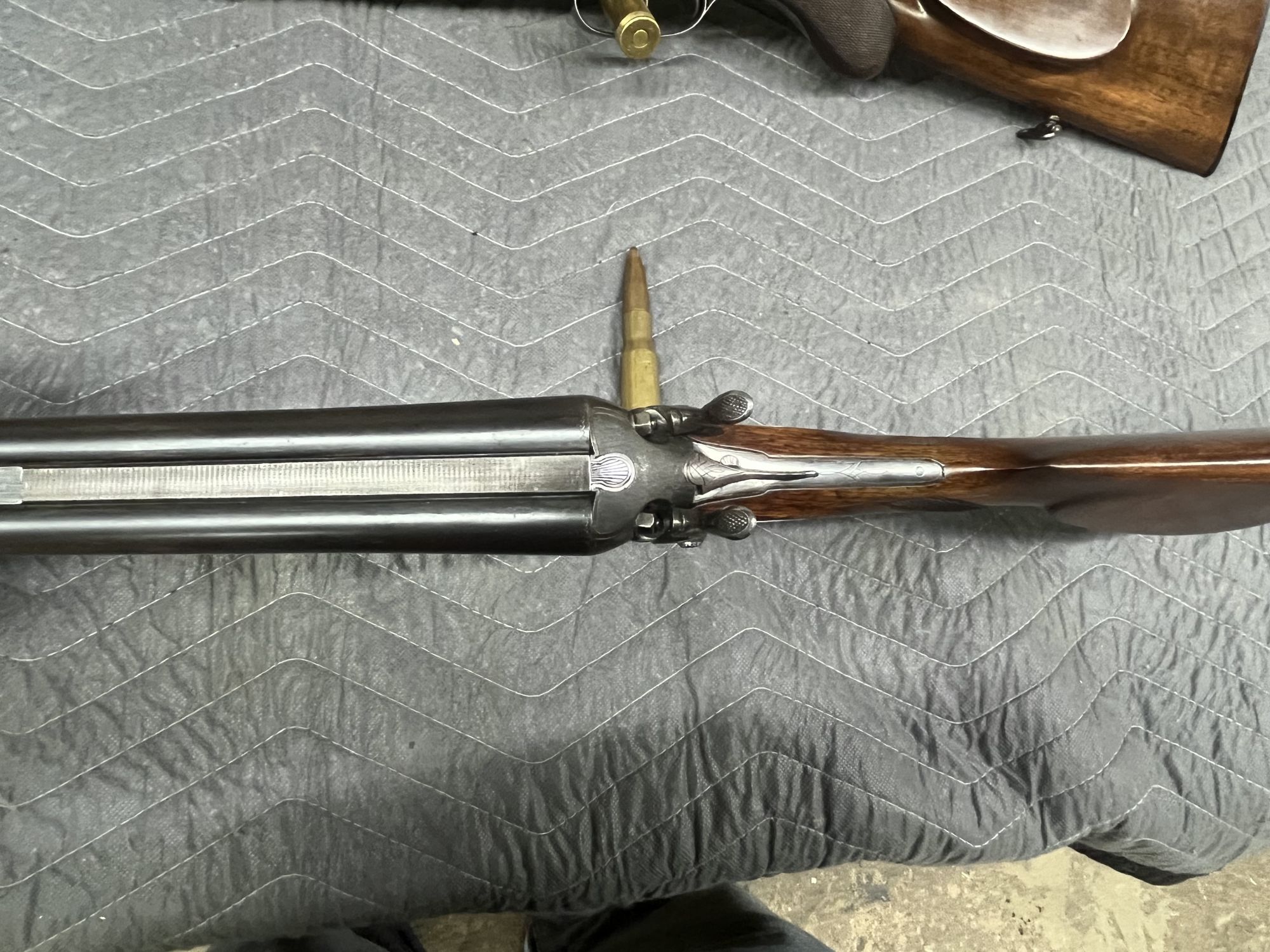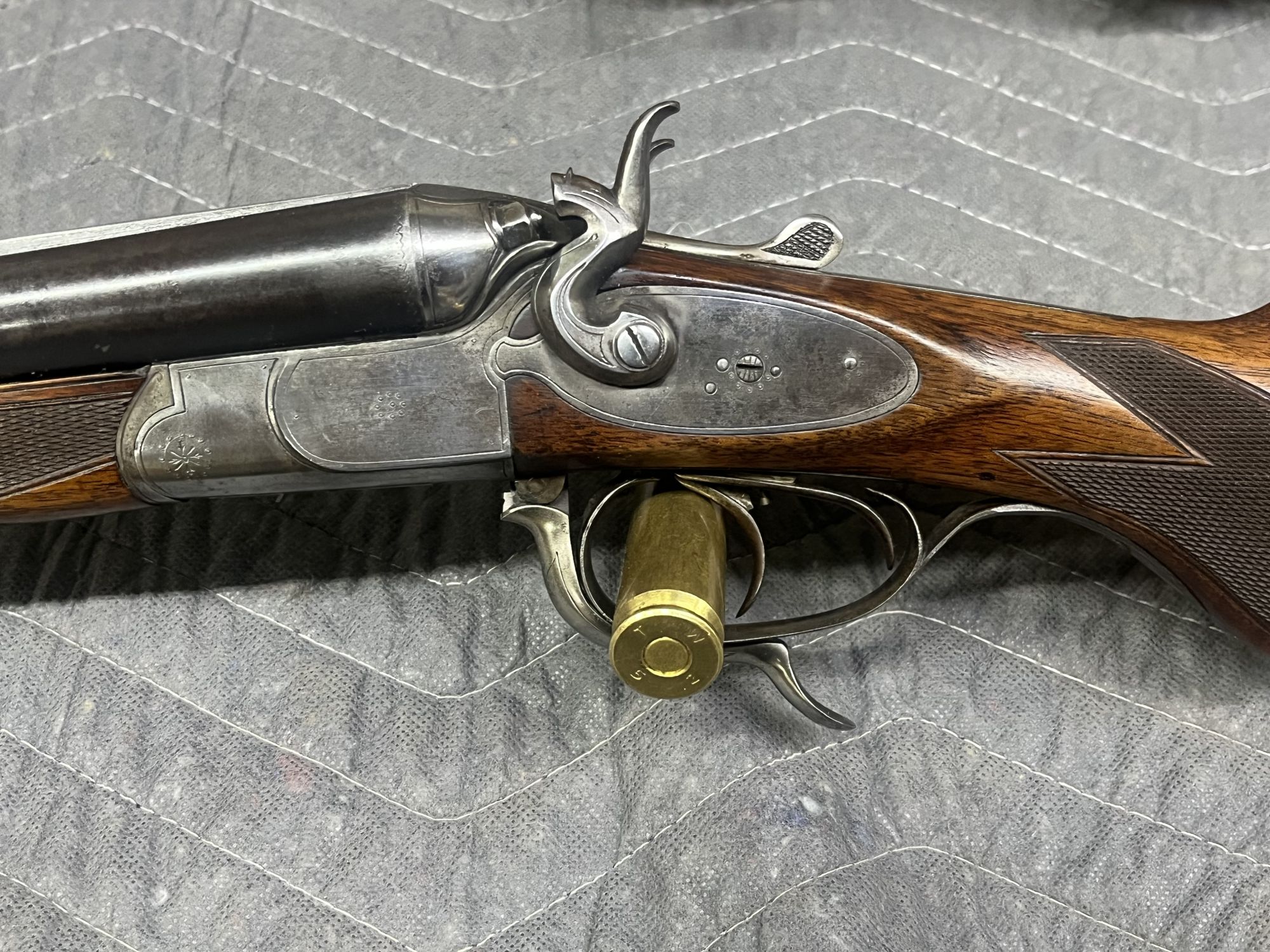 Pre WW-1 Guild Gun, 16ga.x 16ga.x (9.3x72R), excellent condition, nice fine line checkering, set trigger, pop-up rear sight, tight, have ammo available, +(MONTROSE)