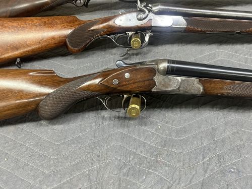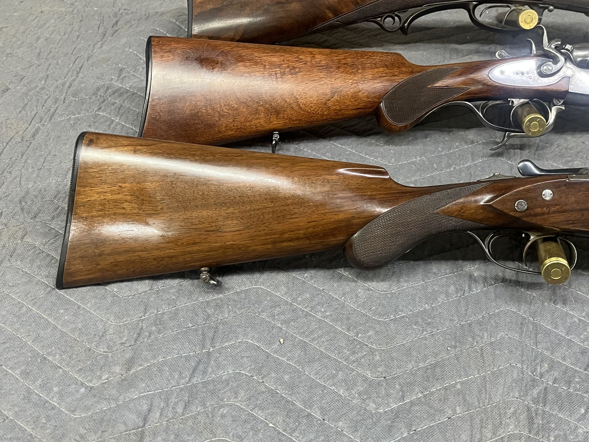 16x16 ga., (8x57JR), set trigger, pop-up rear sight, horn butt plate, nice checkering, very good condition, ammo available. +(MONTROSE)