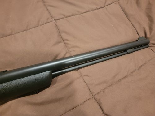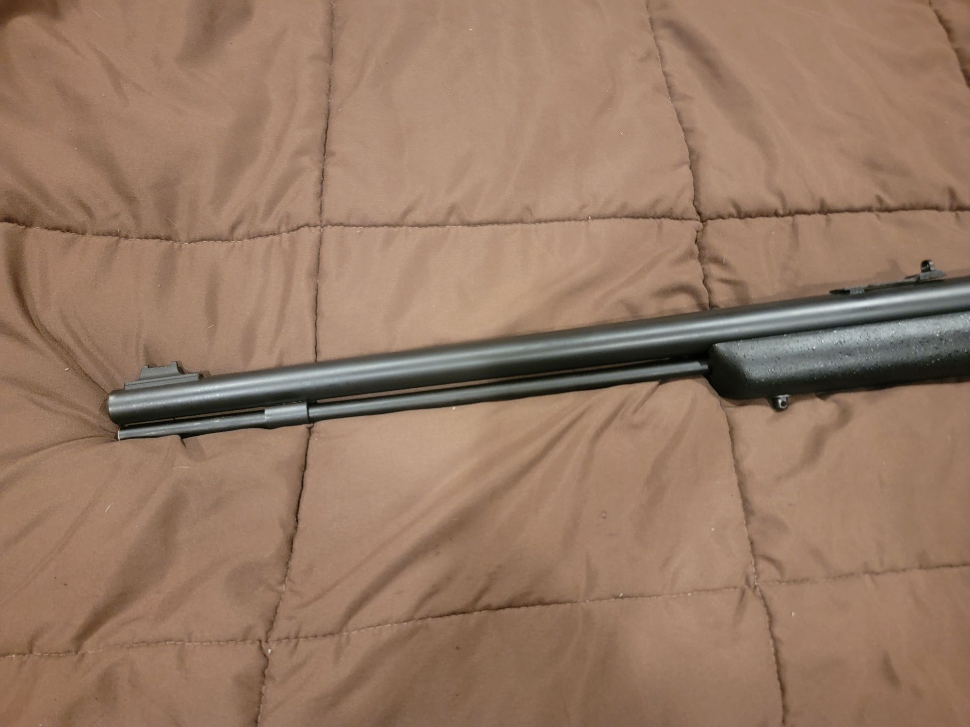 Shows wear from use, front sight is missing the fiber optic sight rod, small crack at tip of forend, bore is in decent condition, overall usable, well-built, low-cost inline. Willing to negotiate or trade +(BLOOMSBURG)