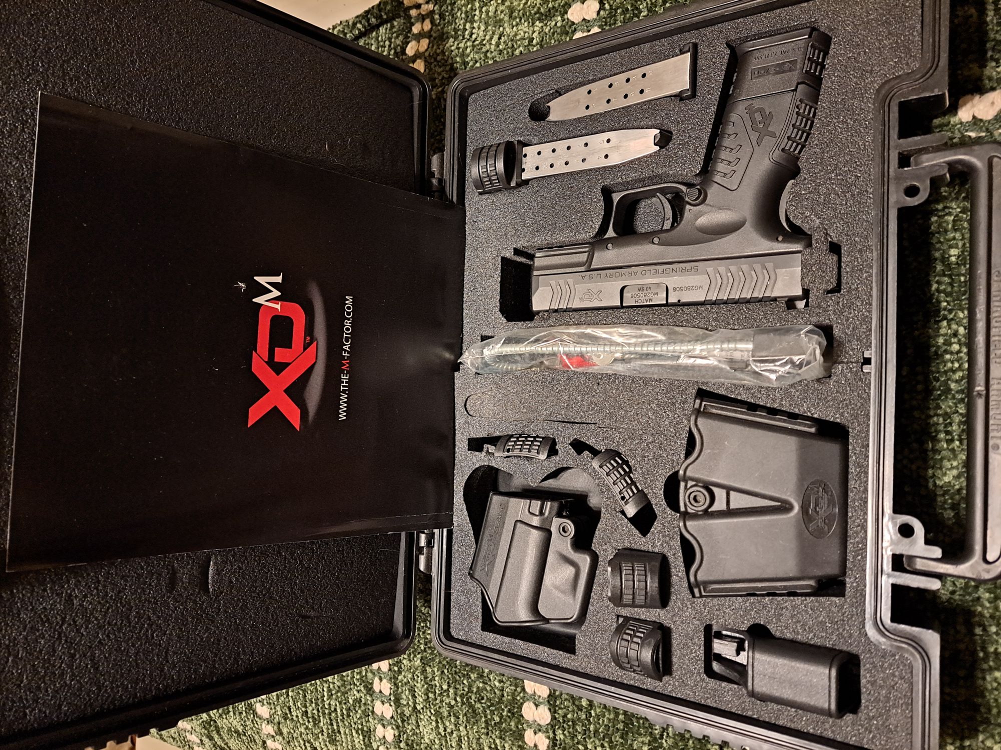 3.8", 40 S&W, standard 3 dot fixed sights, black melanite finish, XD gear holster, double magazine carrier, magazine loader, (2) extras back straps, (2) 16 round magazines with spacer; flush fit 11 round magazine, (2) extra magazine spacers, lock and case. +(DICKSON CITY)