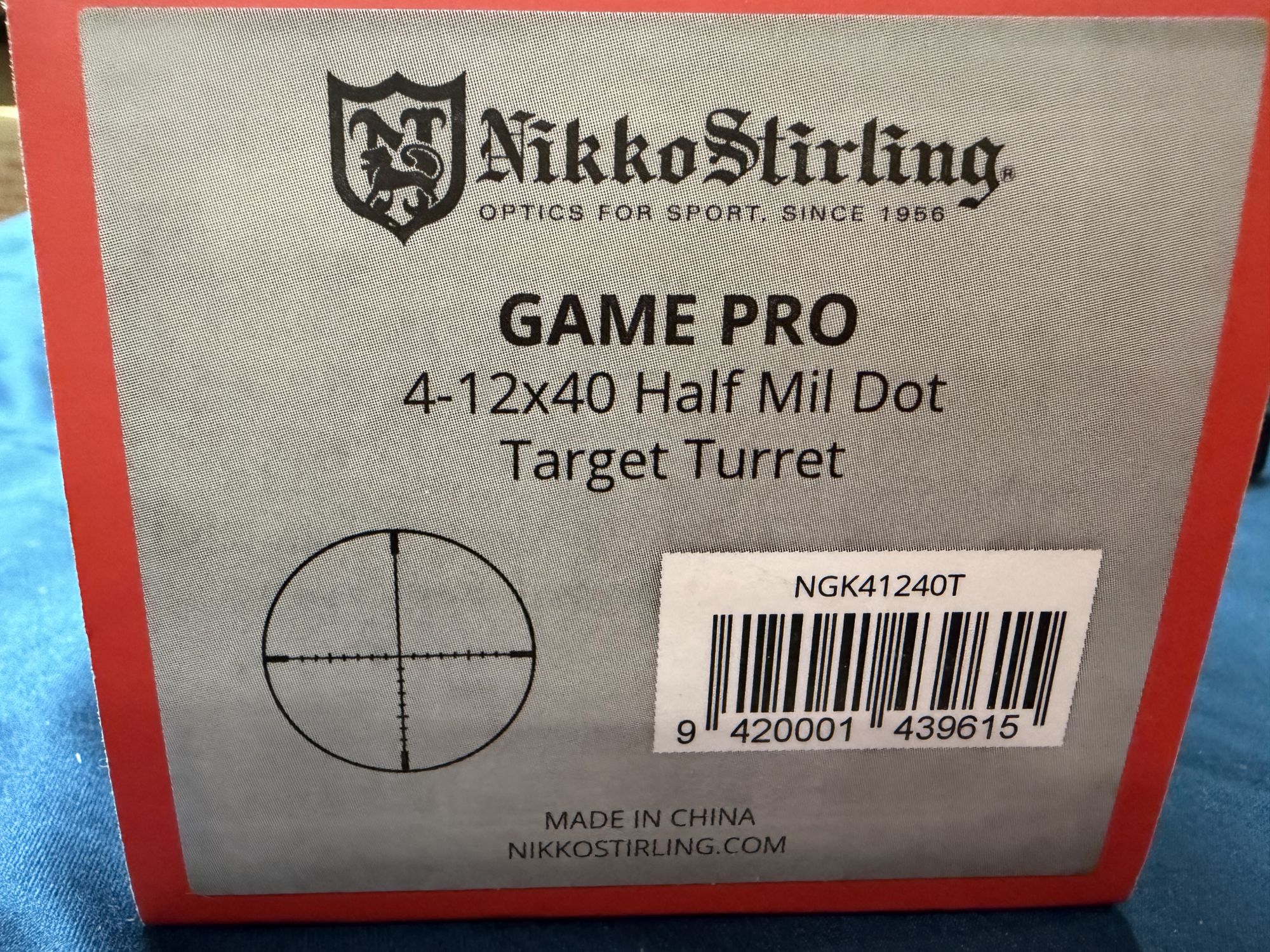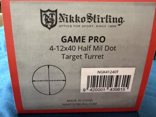 with threaded barrel, brand new, in box, includes Nikon Sterling Game Pro 4 12x40 mm scope +(HUNLOCK CREEK)