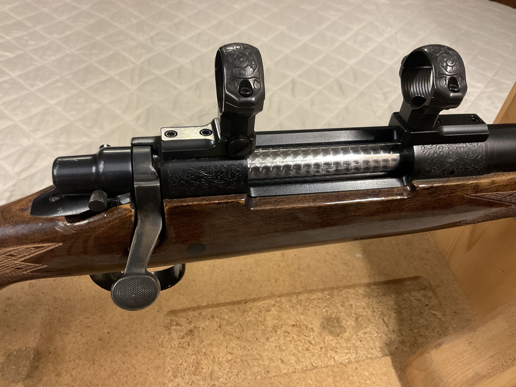 Enhanced, engraved, 8mm/ 375 Styer, reloading dies and brass included. +(MONROE TWP.) $1800.00 OBO