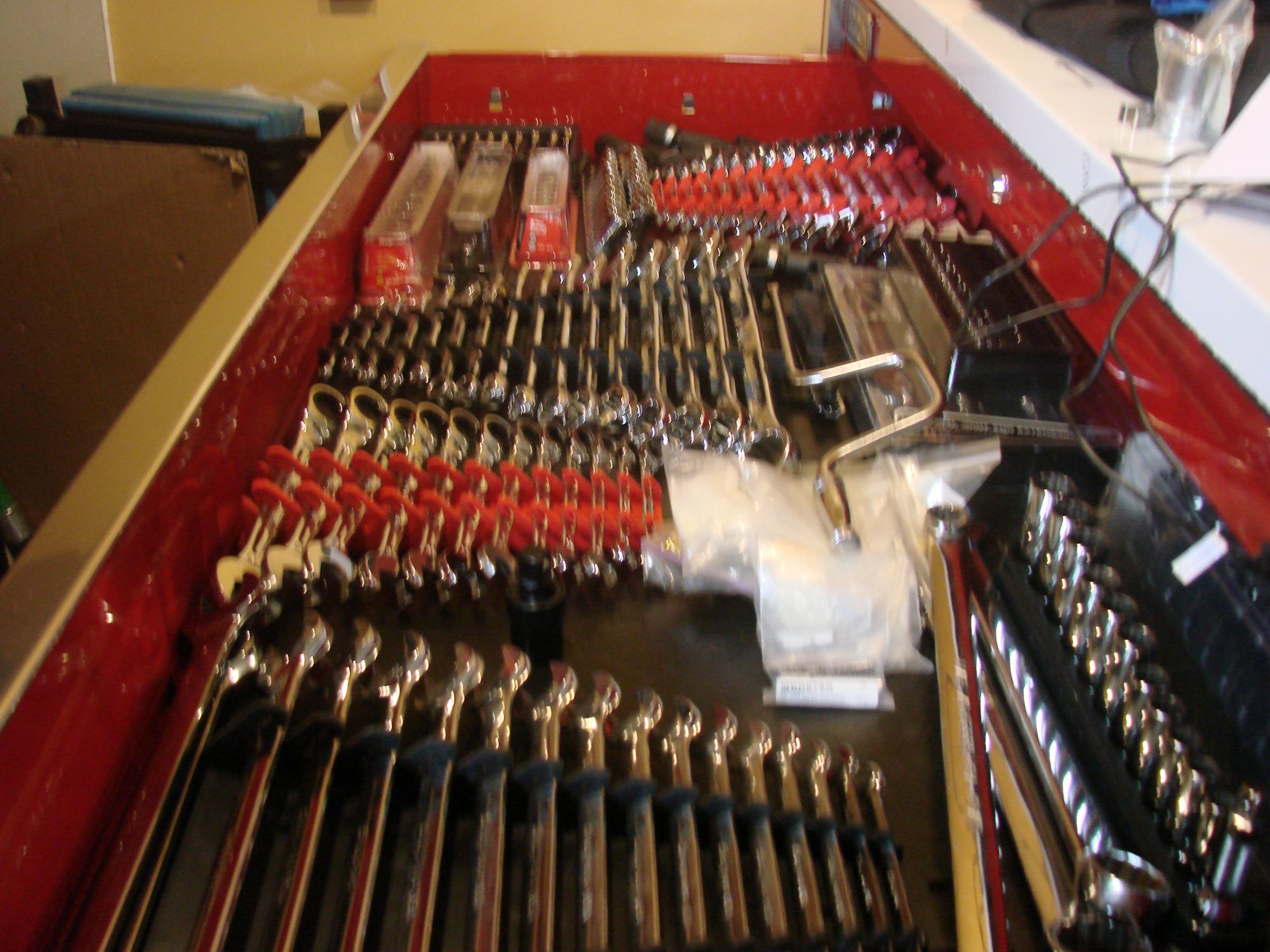 In Icon 56" roller, with stainless top, new, all the hardline tools are Snap-On and Mac, wrenches, ratcheting wrenches, sockets, ratchets, sockets, screwdrivers, etc., 1/4", 3/8", 1/2" drive shallow, semi deep 6 and 12 point, pliers, 3 torque wrenches, pry bars, new Power Probe 3 1/2" impact dockets, deep and shallow, SAE 3/8"- 1-1/2", metric 10mm to 36mm, Snap-On and Mac flex head wrenches, FHO-FHOM series, must seem to appreciate, most are sealed in their cartons, also cordless power tools, Ingersoll Rand 1/2" impact gun kit, Milwaukee 3/8" impact gun kit, Earthquake 3/8" cordless ratchet; air tools, new 1/2" impact gun, air hammer, cutoff tools, floor jack, 3 pair jack stands, too much more to list, moving, can't take with me, over $26,000 invested, +(LARKSVILLE)