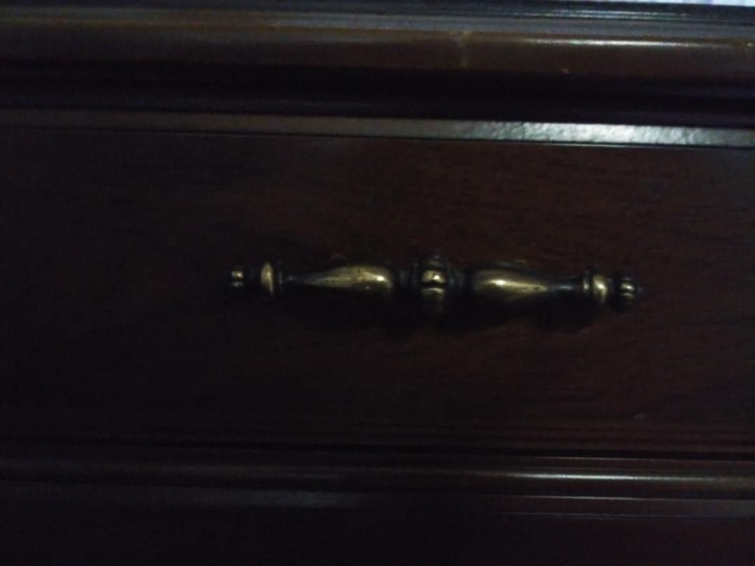 Solid wood with a glossy walnut finish, pull down radio, and an 8 track cassette player, unique tape player side table perfect for entertaining, great vintage condition and fully functional, everything works. +(ASHLAND)
