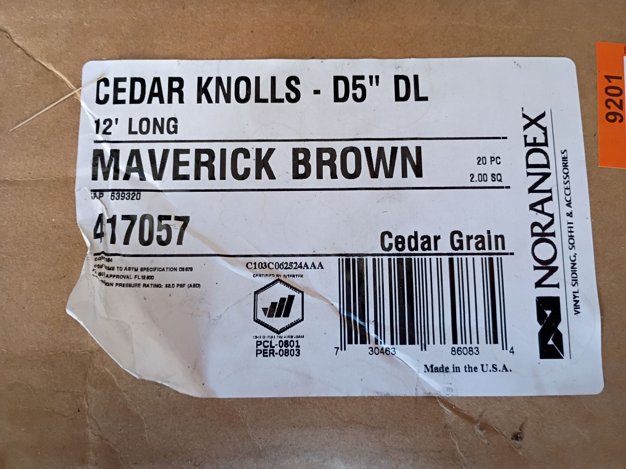 Norandex Cedar Knoll Double 5 Dutchlap, Maverick brown, leftover from job, have 14 pieces (140 sq. ft.), still in box, cost $290.00 +(CLARKS SUMMIT)