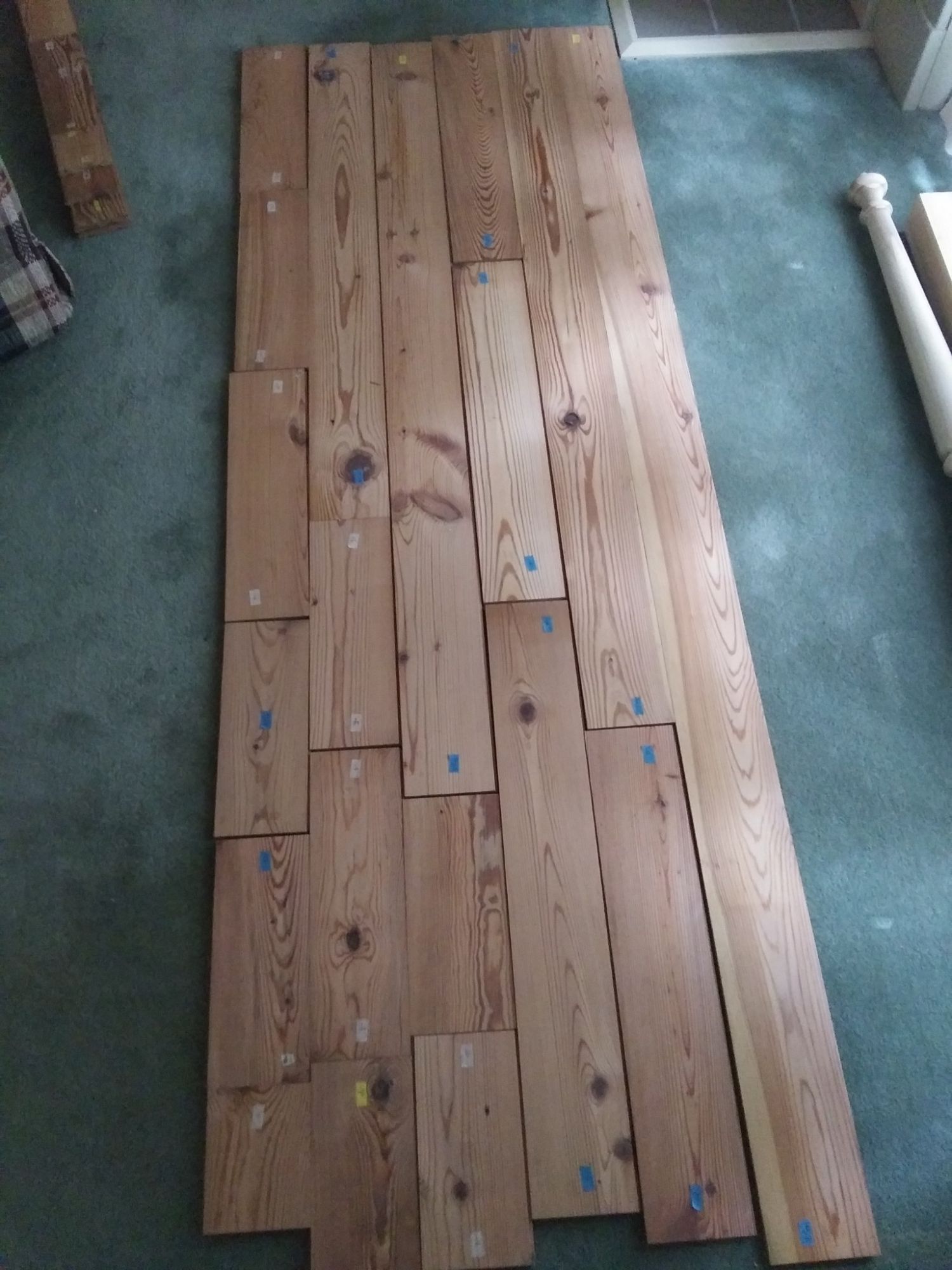 1/2" reclaimed T&G, antique heart pine, 14 square feet, width 4-1/2", ends butt cut, lengths are random, trees from which this was milled began growing circa 1790, stored in a climate controlled area, contains amazing and beautiful grains.+(CLARKS SUMMIT)