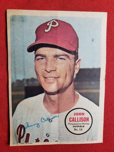 1967 topps pin-up mini poster philadelphia phillies john callison