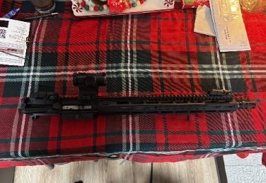 less than 20 rounds through, Spikes tactical upper receiver, Ballistic Advantage 223 Wydle SPR profile 16” stainless barrel, mid length gas system, BCM mod 1 compensator, Fail zero nickel boron BCG, Strike Industries charging handle, with Magpul bus sights. +(PLAINS) 600 or trade for LPVO will add cash for right deal