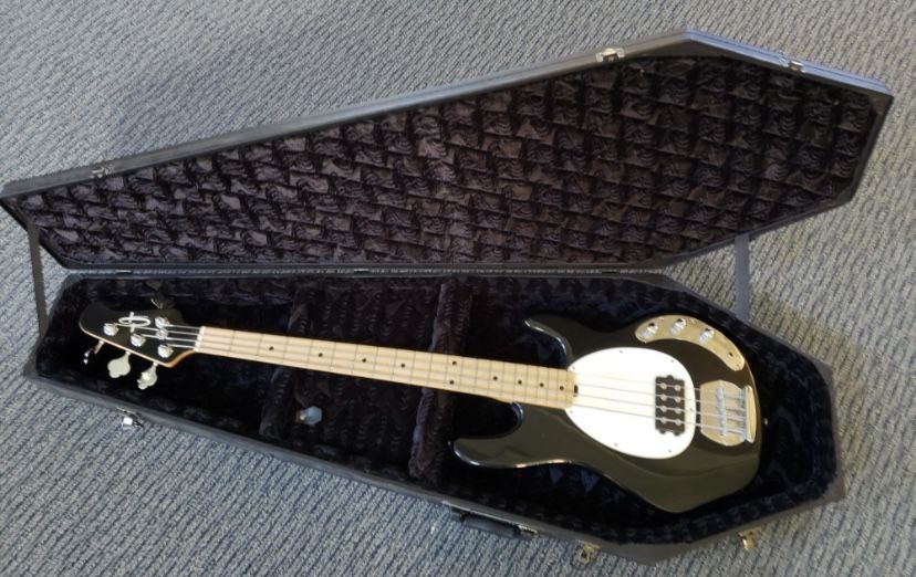 ELECTRIC BASS GUITAR AND COFFIN CASE