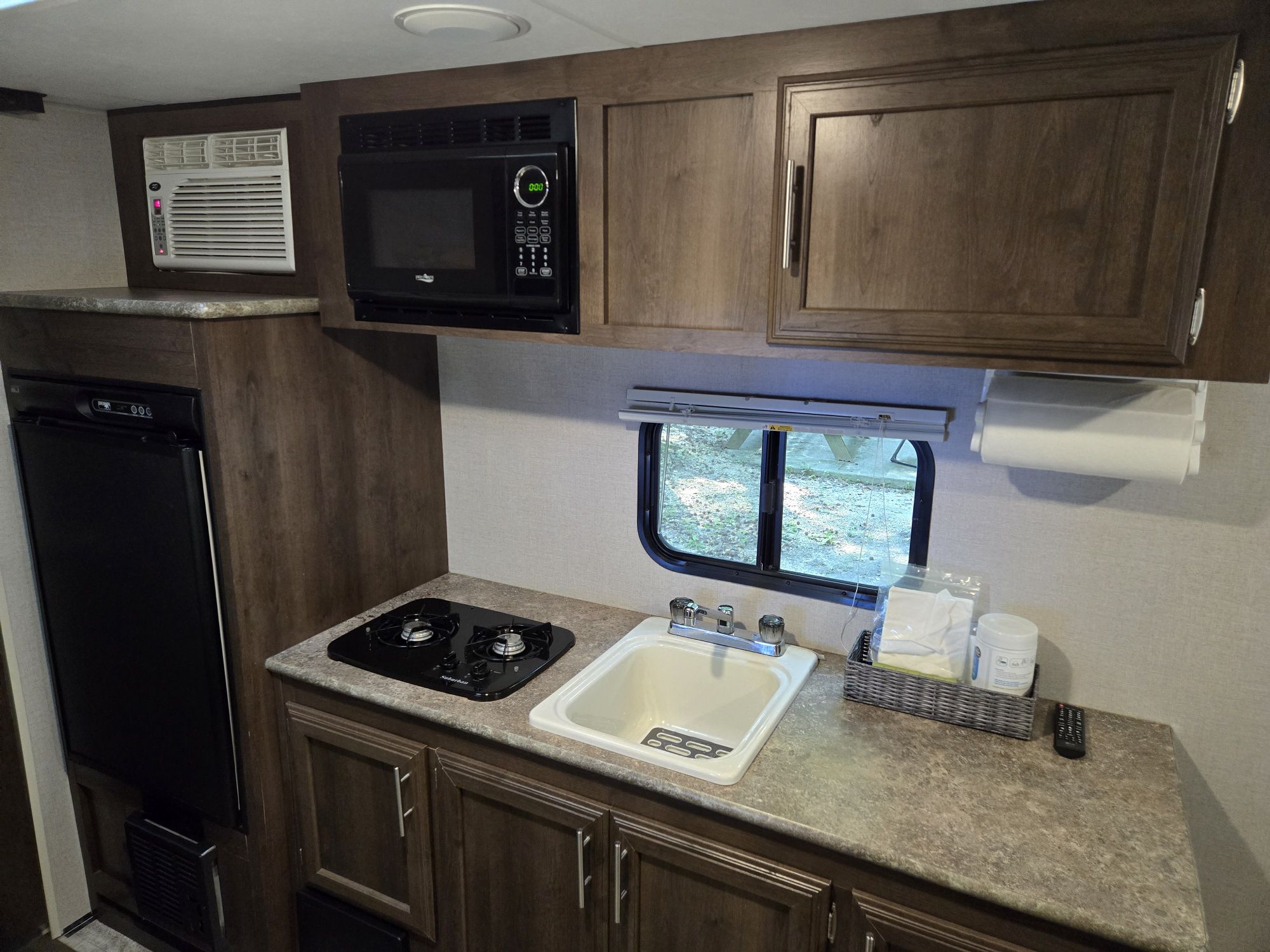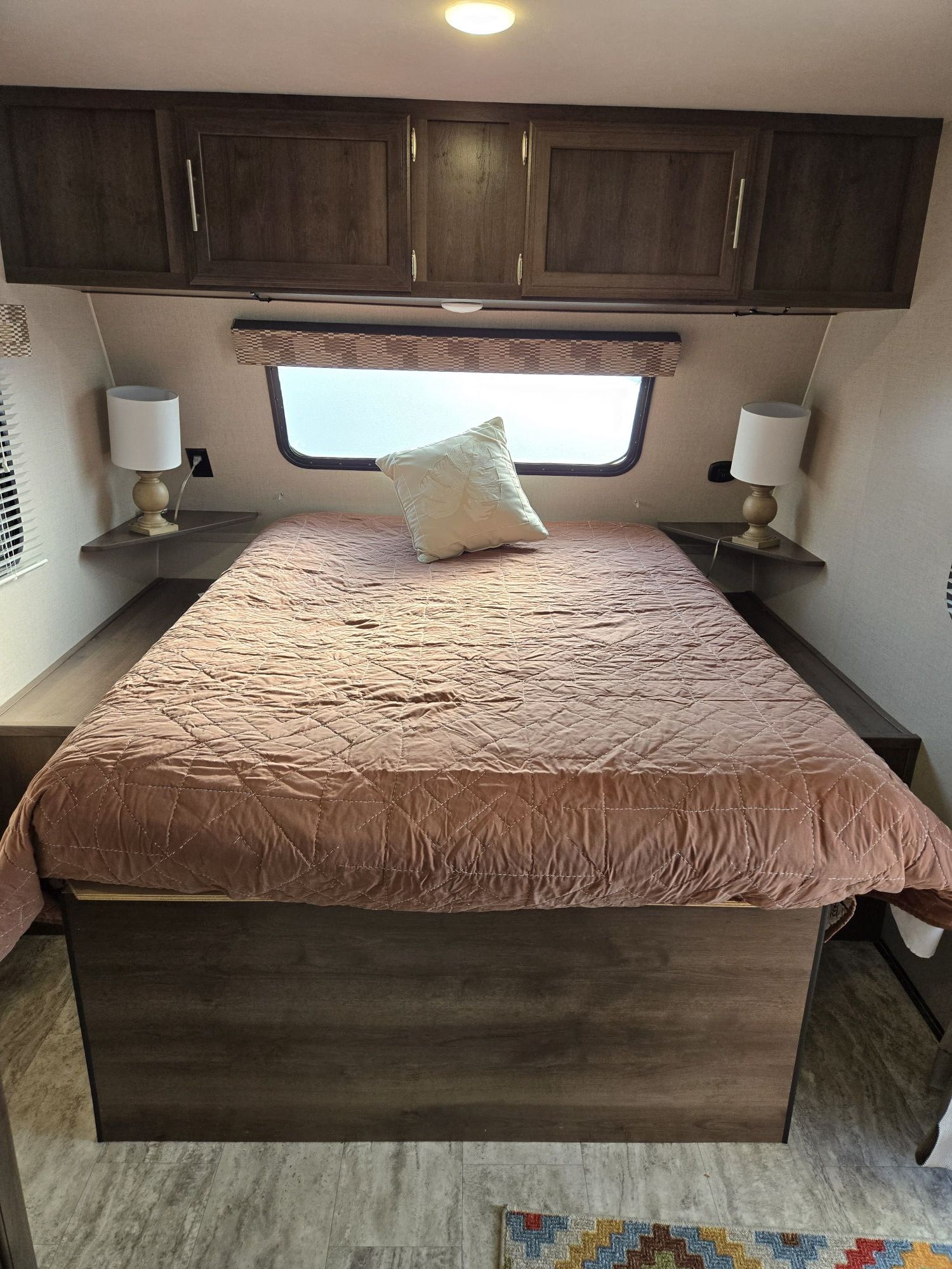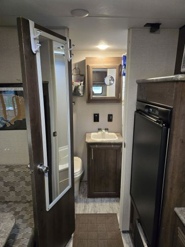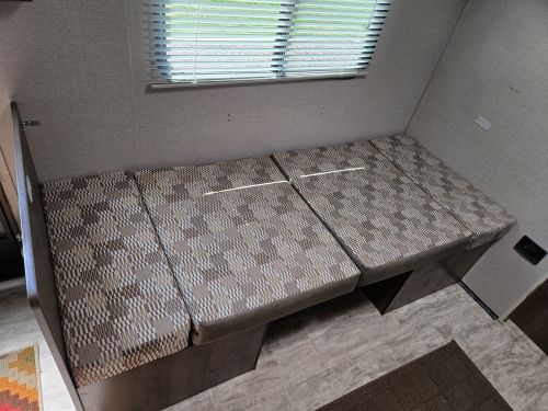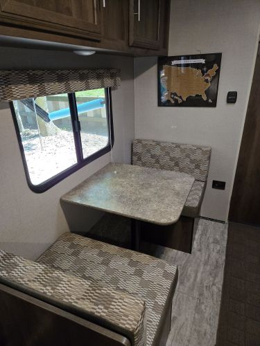 Last call before winter storage, ultra lightweight, easy to tow package, hitch weight 336 lbs., dry weight 2,713 lbs, GVWR 3500 lbs, 22 feet overall, queen bed with nightstands on each side, storage cabinets above the bed, bath has large closet, smaller storage cabinet, toilet, vanity and shower/tub, two dining seats with large storage compartments underneath, front pass through storage, excellent condition, very lightly used, new tires with less than 500 miles, new spare tire, sun covers for all tires, 9 foot power canopy, outside speakers and LED lights, rear camera with 7 inch in-cab screen that can be used when driving and backing up ($300 value), new Reese weight distribution hitch with friction bars ($400 value), new deep cycle battery, all the set equipment you need ($300 value) +(KINGSTON)