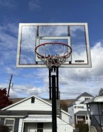 shatterproof backboard, adjustable up to 50”, paid $400 new; +(JEFFERSON TWP.)