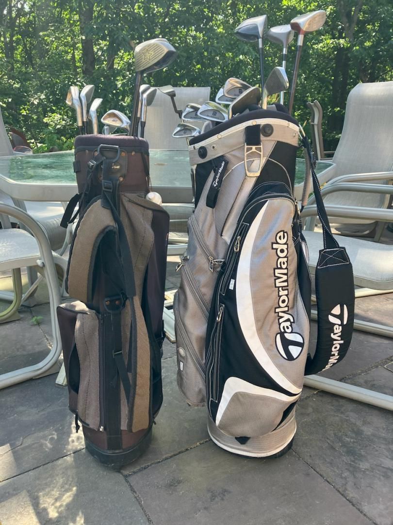 2-sets, 1-set young beginners, Championship Series, 7-irons, putter, & 1-set adults, 8-irons, 3-woods & putter, both sets with all accessories, golf balls & tees, +(OLD FORGE)