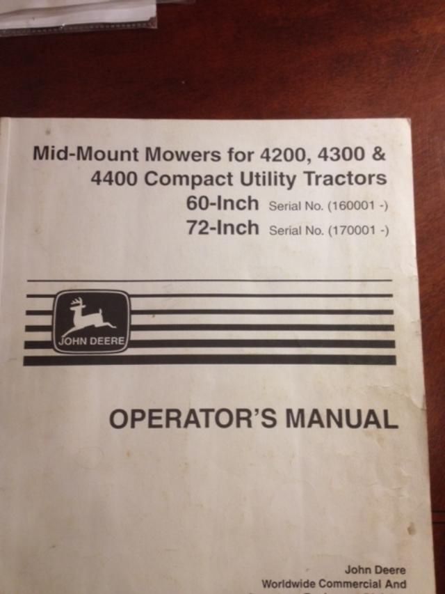 5' cut, center PTO driven, 30 hours use, garage kept, excellent condition, perfect for John Deere compact utility tractors, new mower decks are selling for over $3,000.; Priced to sell +(TUNKHANNOCK)