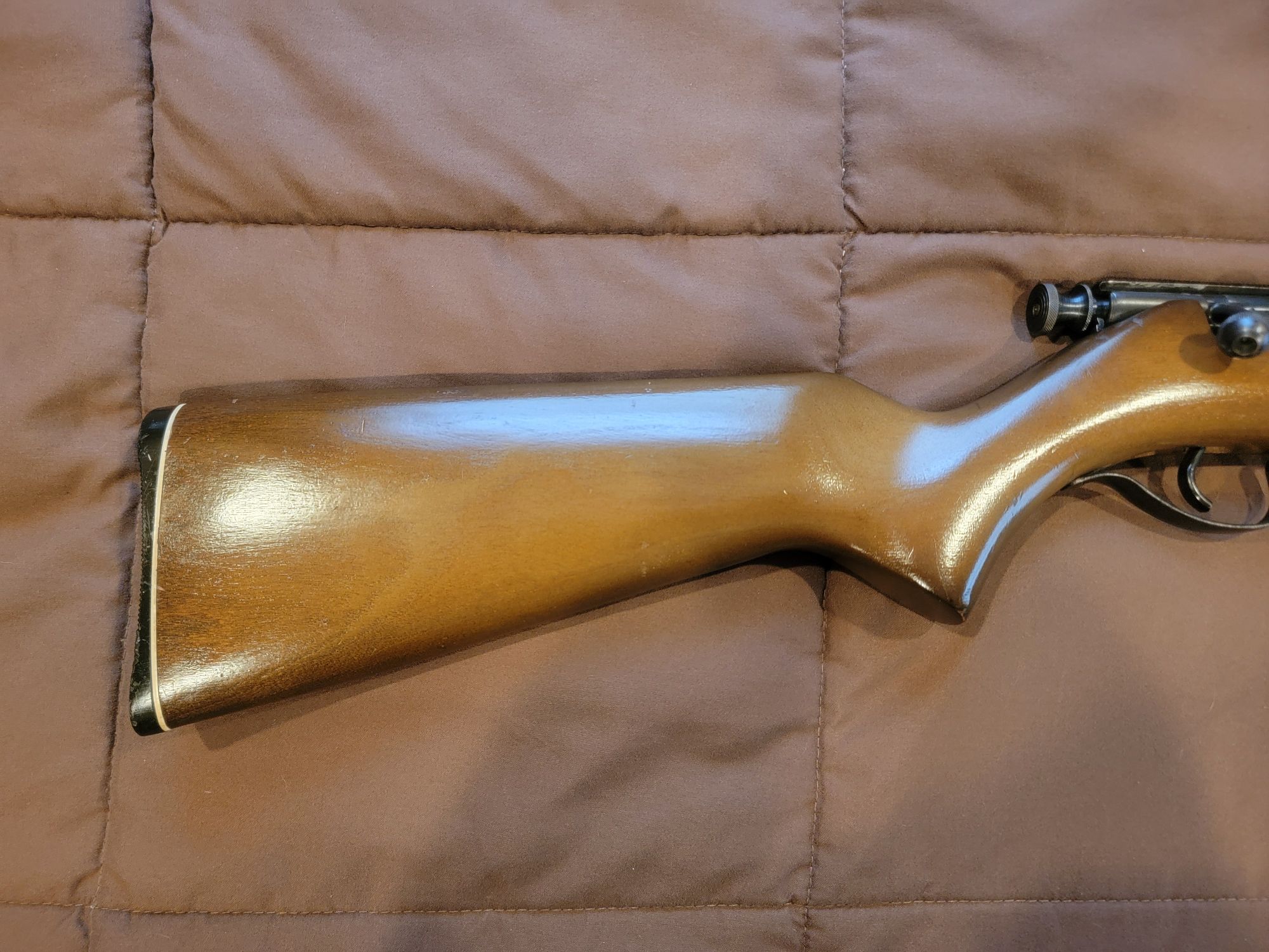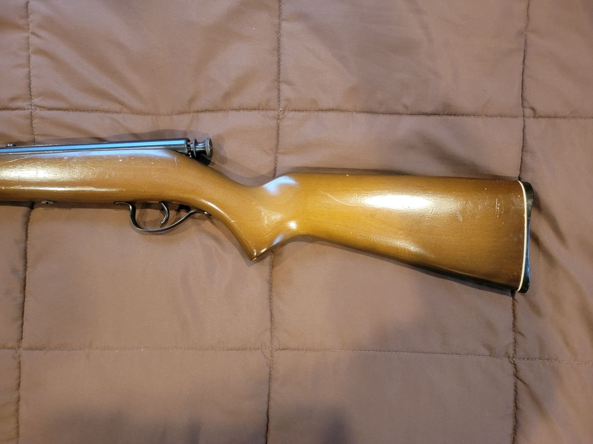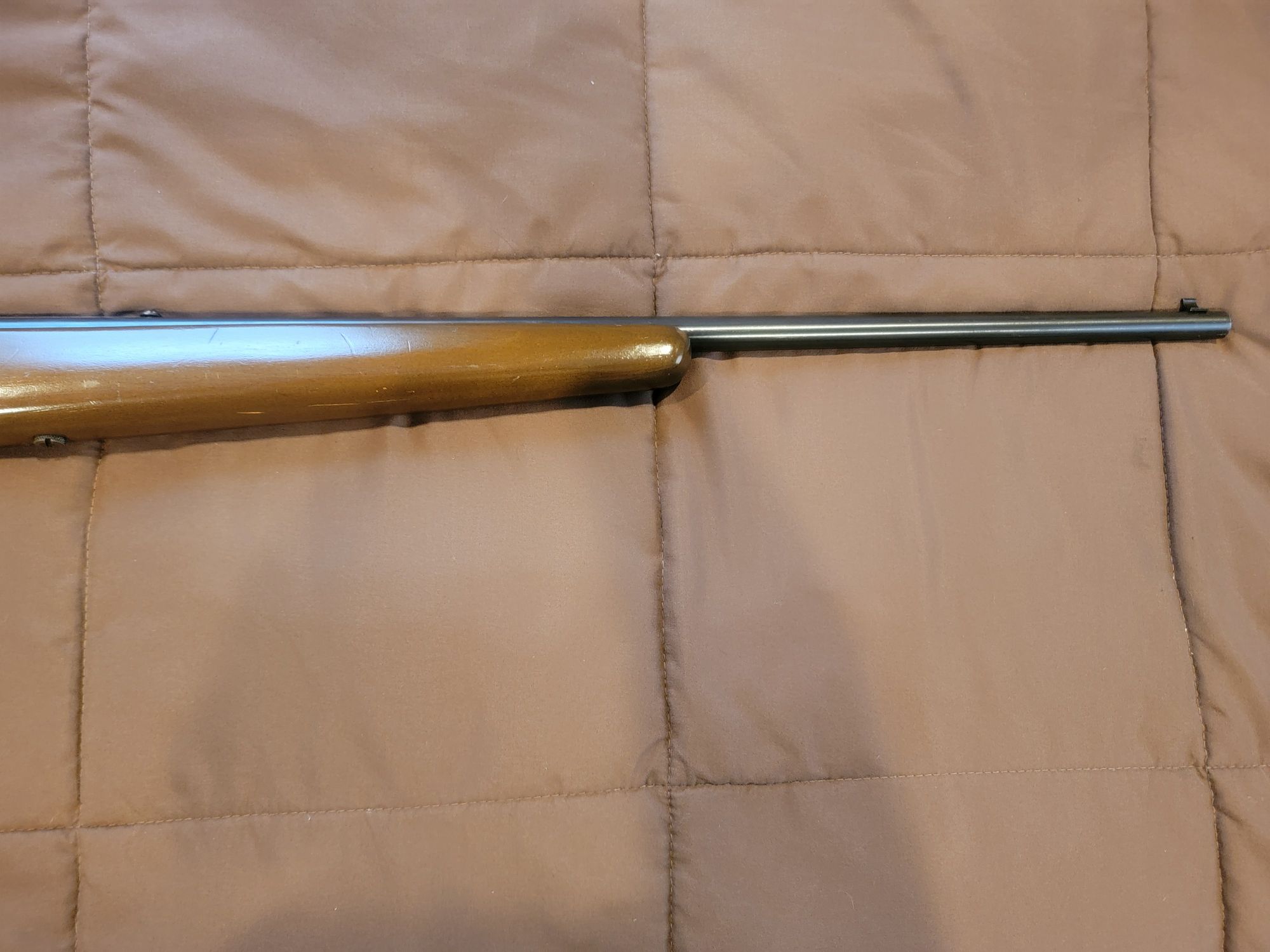 Bolt action, single shot, wood stockm, shows some wear, missing rear sight and rise. willing to negotiate or trade. +(BLOOMSBURG)