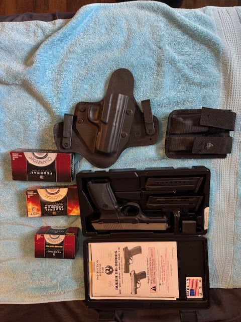less than 10 shots fired, like new condition, includes double belt clip holders, shells, holster, etc., +(PECKVILLE) Call Allan