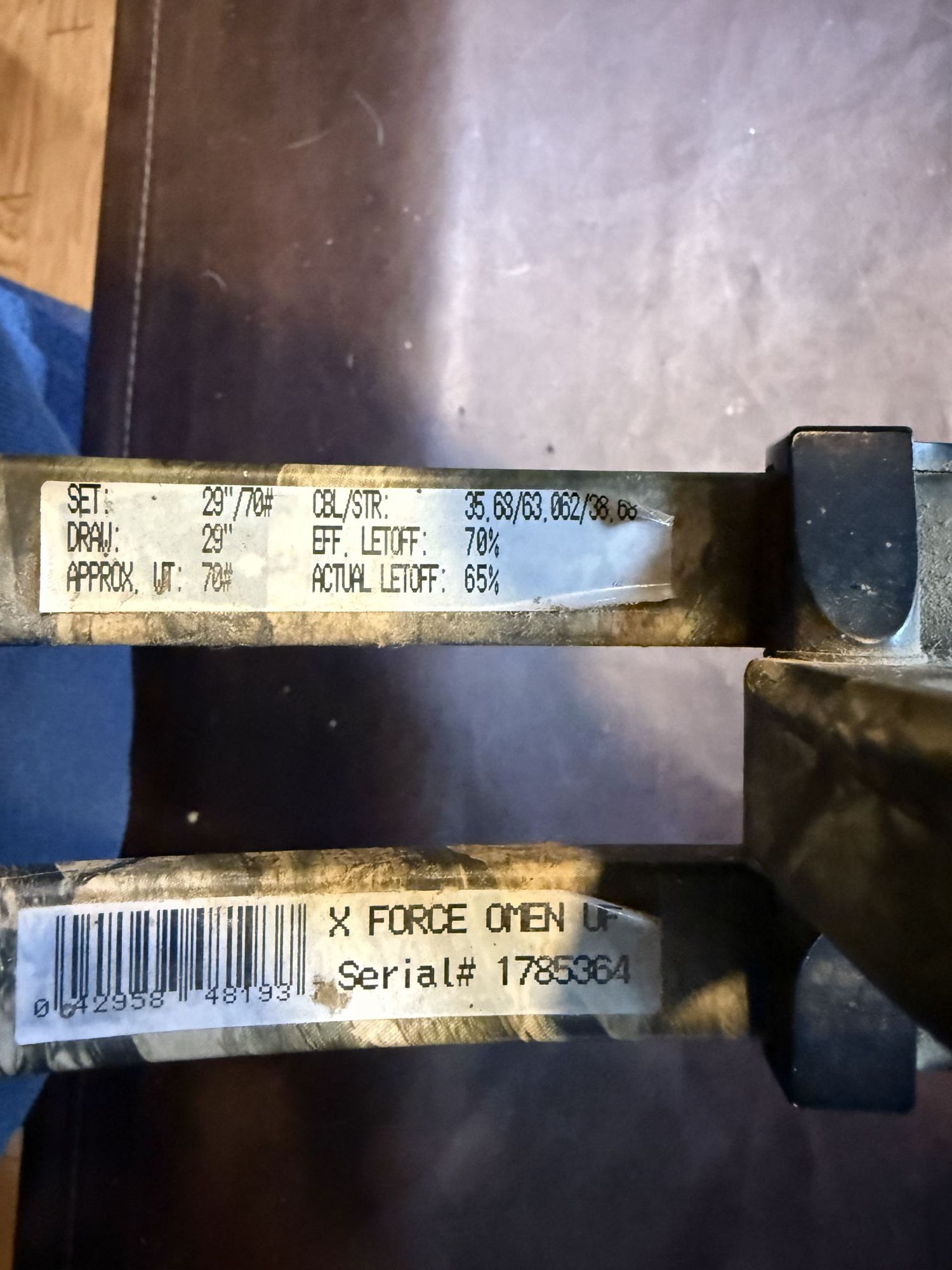 right handed, 27.5" draw length, 60-70 pound draw weight, +(Waymart)
