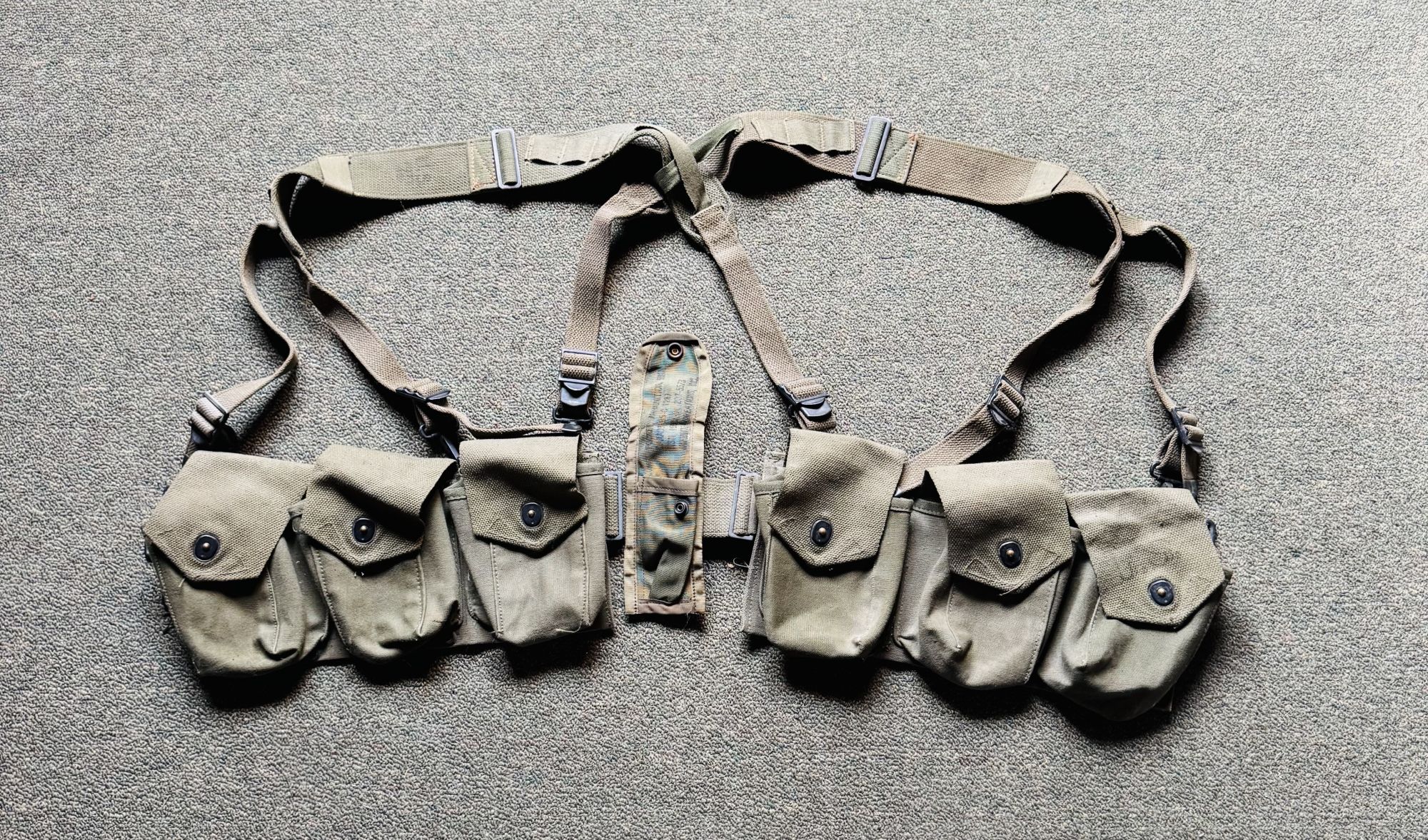 WW II era, with suspenders, and M9 pistol magazine pouch, Boyt 45, marked USGI +(HALLSTEAD)
