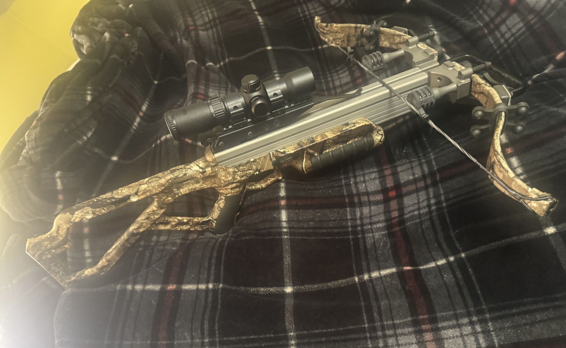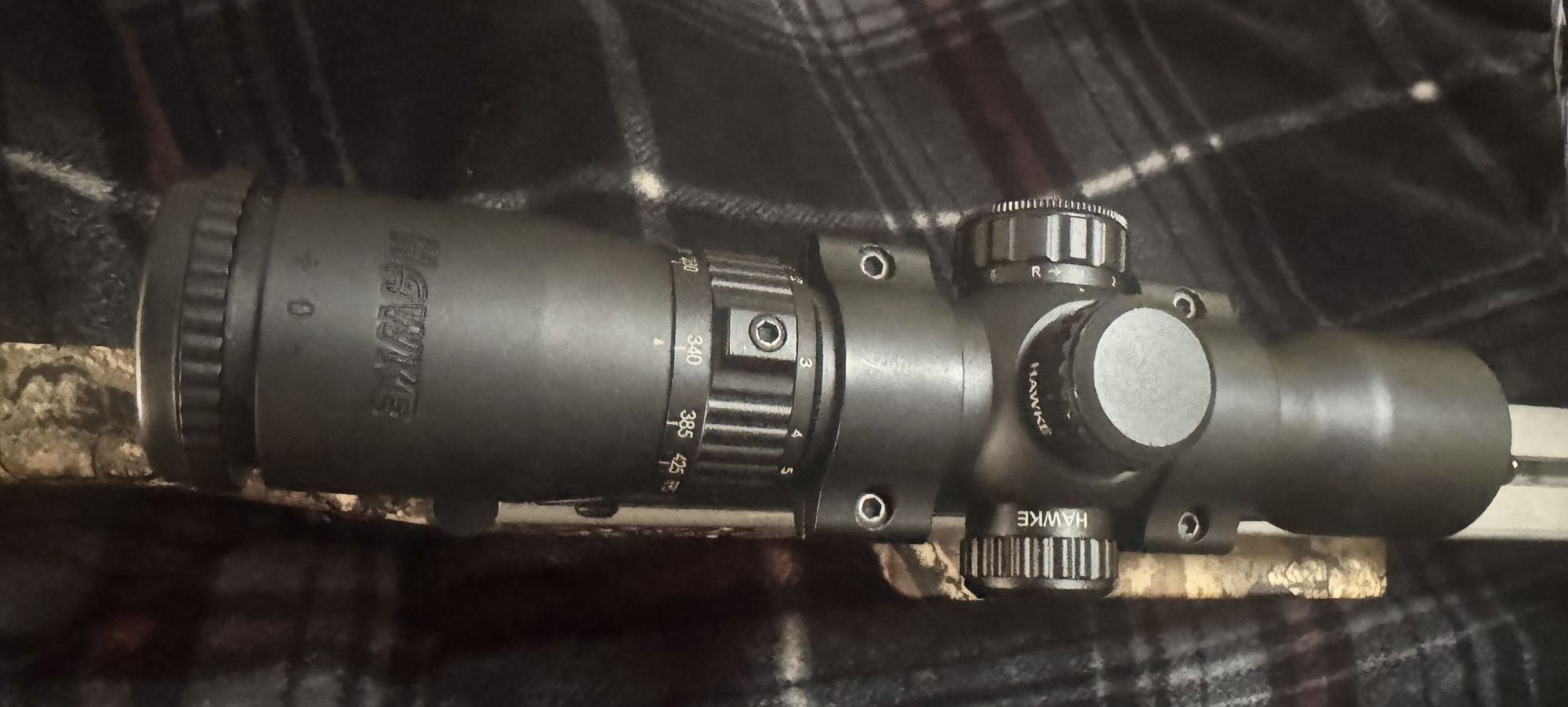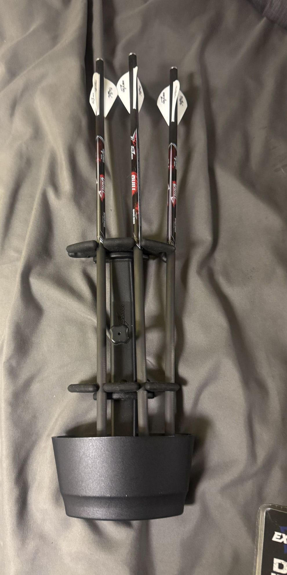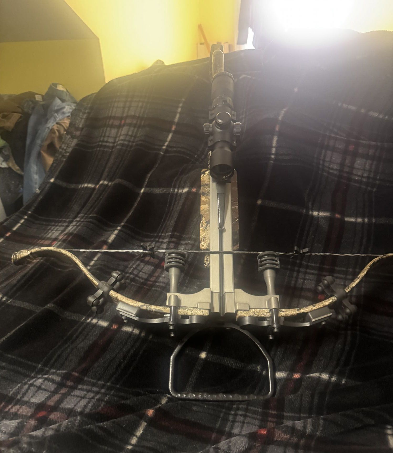 shot less than 10x to sight in, never hunted with, quiver, bolts, rope cocking device, have original box, Hawke lighted scope or with new Drop Zone scope, $500 until 11/22/25 then keeping it. This is worth over $800 +(EASTON)
