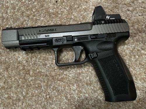 with crimson trace red dot, extra back strap, 2 20 round magazines, 4 optic mounting plates, holster, and hard padded case, new condition, would cost over $600 to buy like it is, this gun Canik considers competition out of the box, serious inquiries only. $375, firm, no trades Text preferred +(HAZLETON)