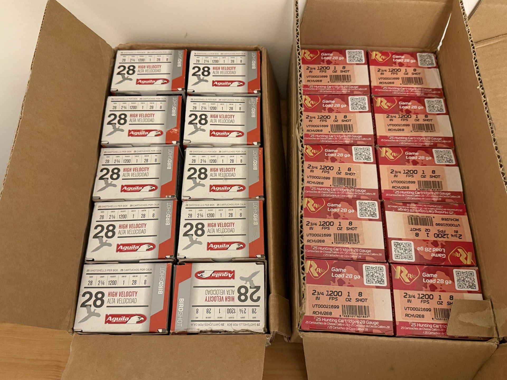 7 cases, new, factory 2-3/4" #8 one ounce loads, RIO, Federal, Aguila and one case of Italian Noble Sport, minimum 1 case purchase, shells are fresh home kept not in basement, purchased in last 2yrs, No trades. Cash only +(WHITE HAVEN) $100.00 per case