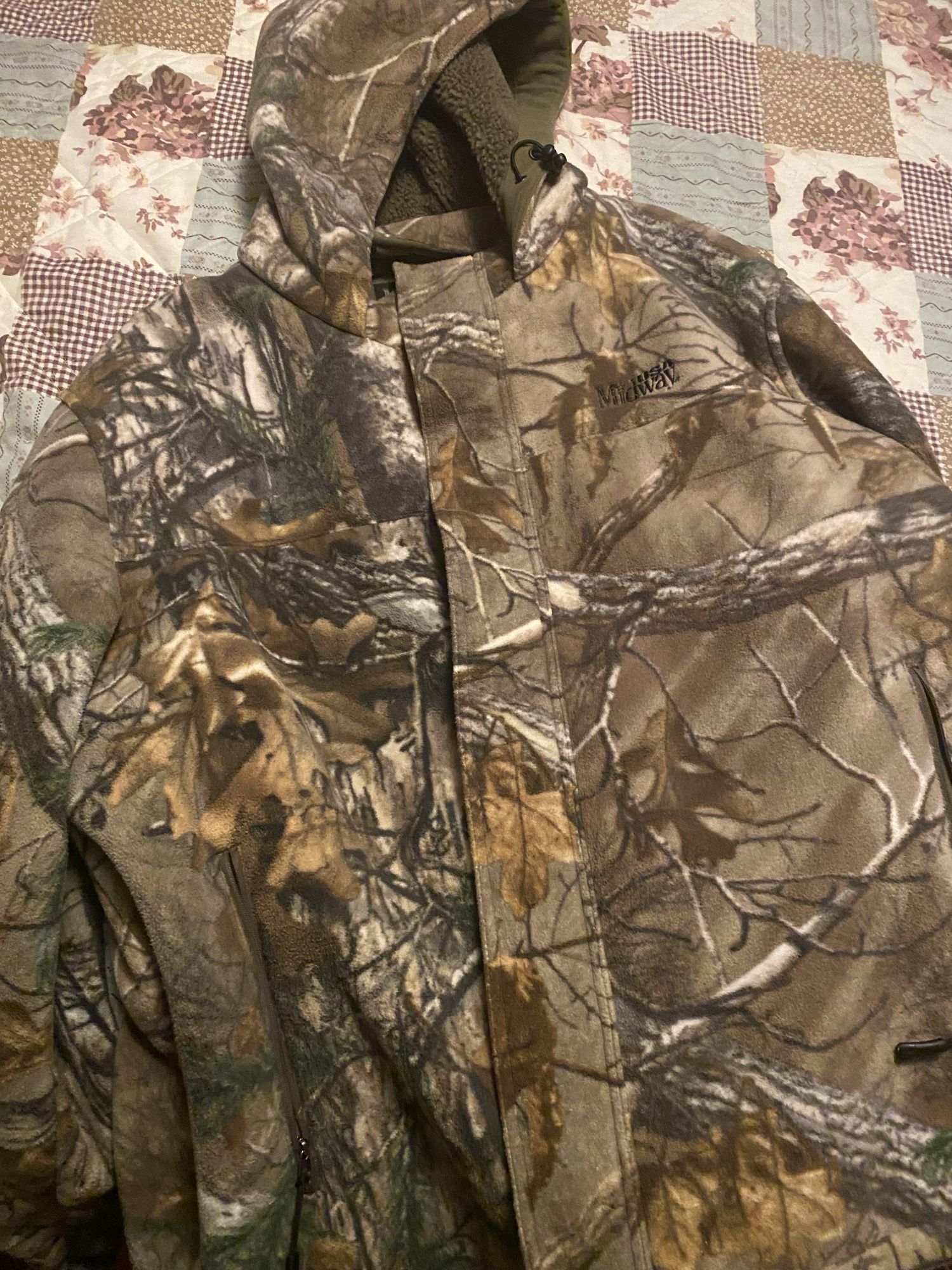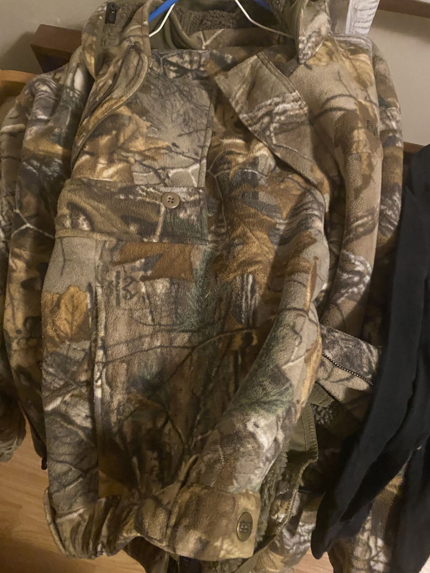 large Midway USA fleece camo pants, XL coat, like new. Leave message, +(FOREST CITY)