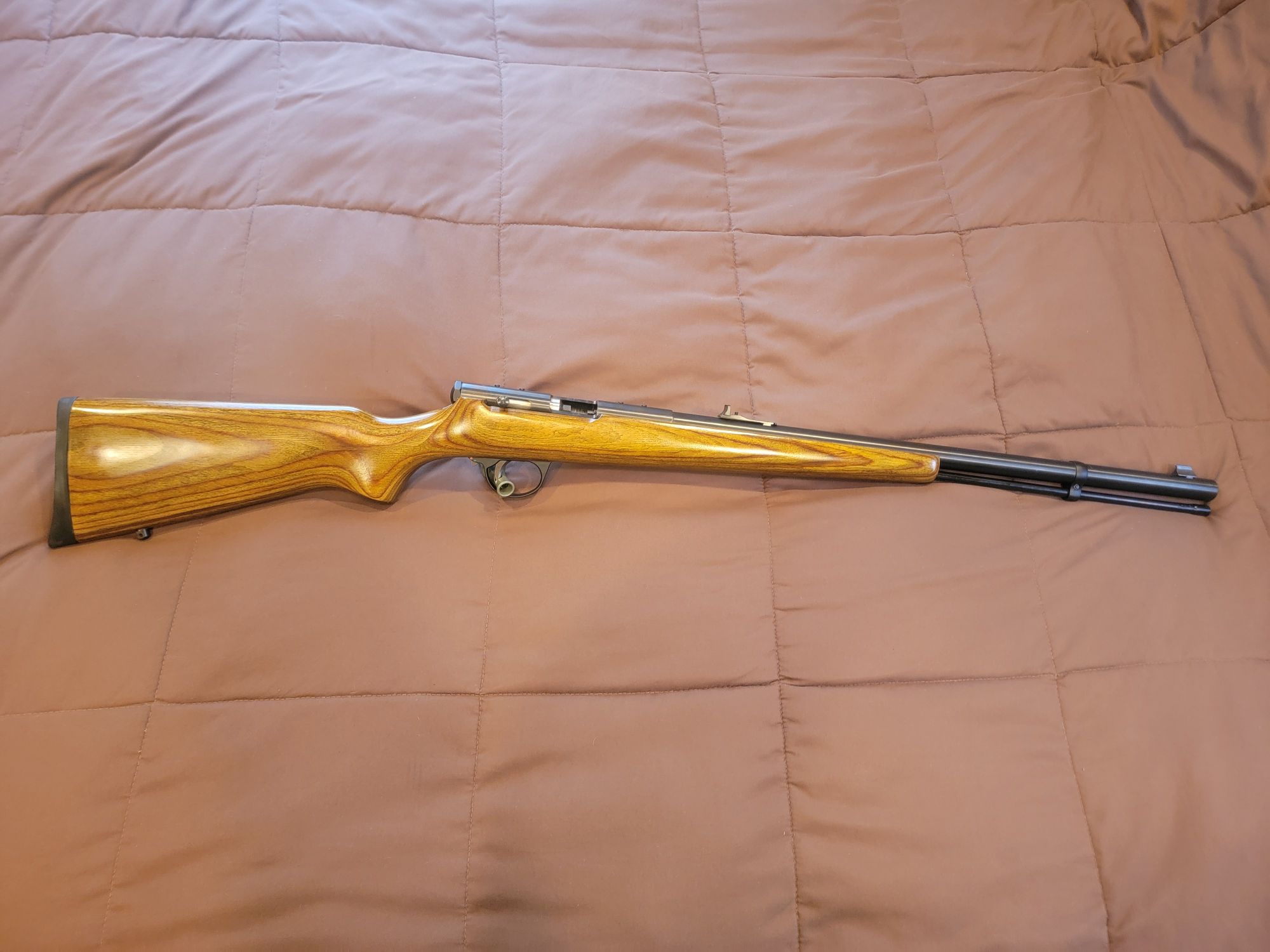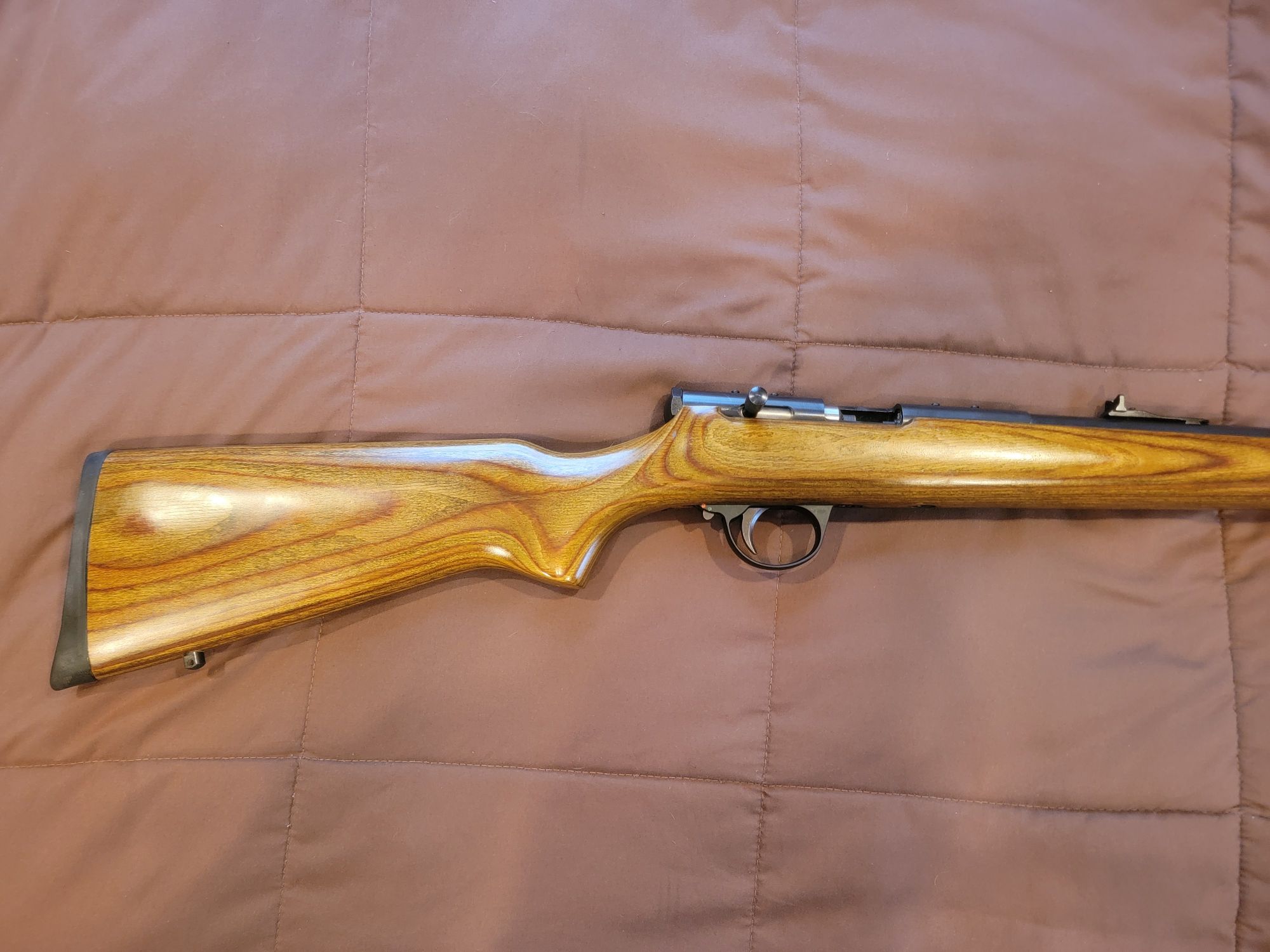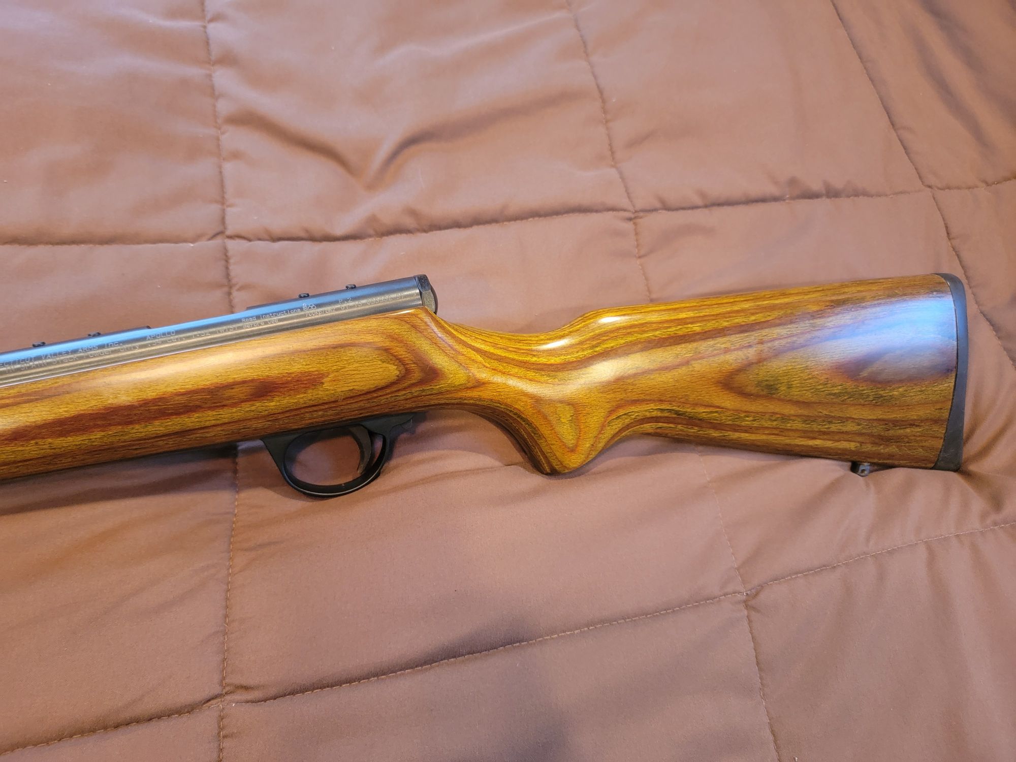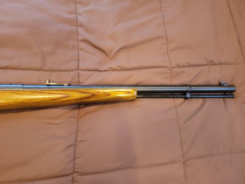 Wood stock, blued finish, 1:32 twist, factory drilled and tapped for scope mounts, excellent bore, takes #11 caps, with one pack of 100 caps. Serial number ending 97, not an earlier one that was recalled. Willing to trade, can add cash on top. +(BLOOMSBURG)