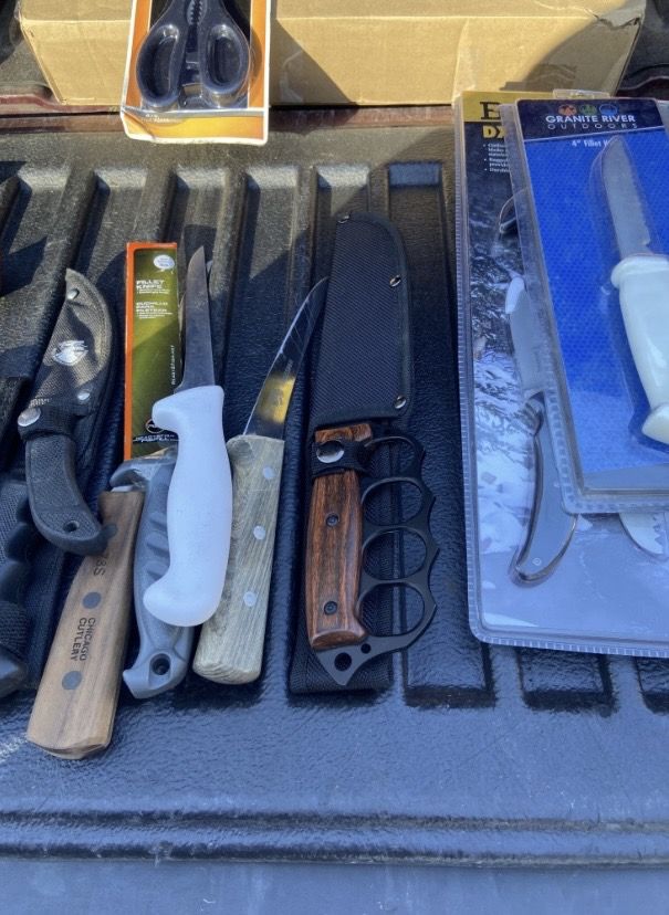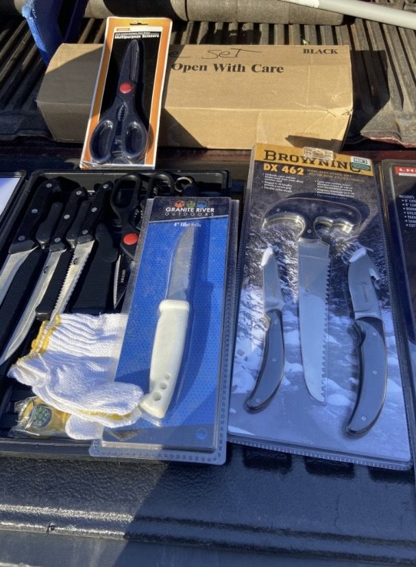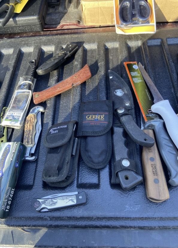 44 mag and Striker, with arrows and cases, box of knives. including Schrade Old Timer 150T, package deal +(DALTON)