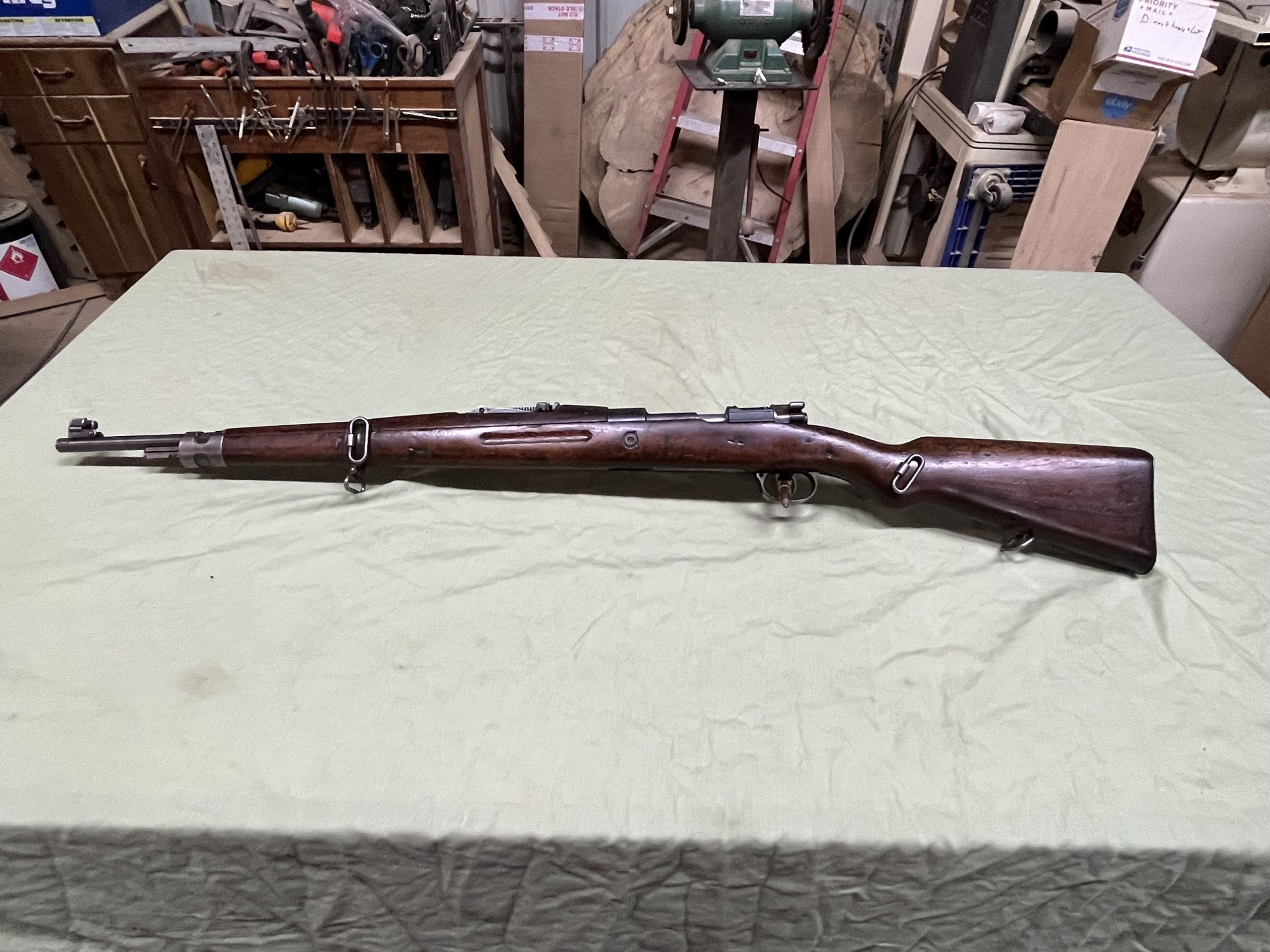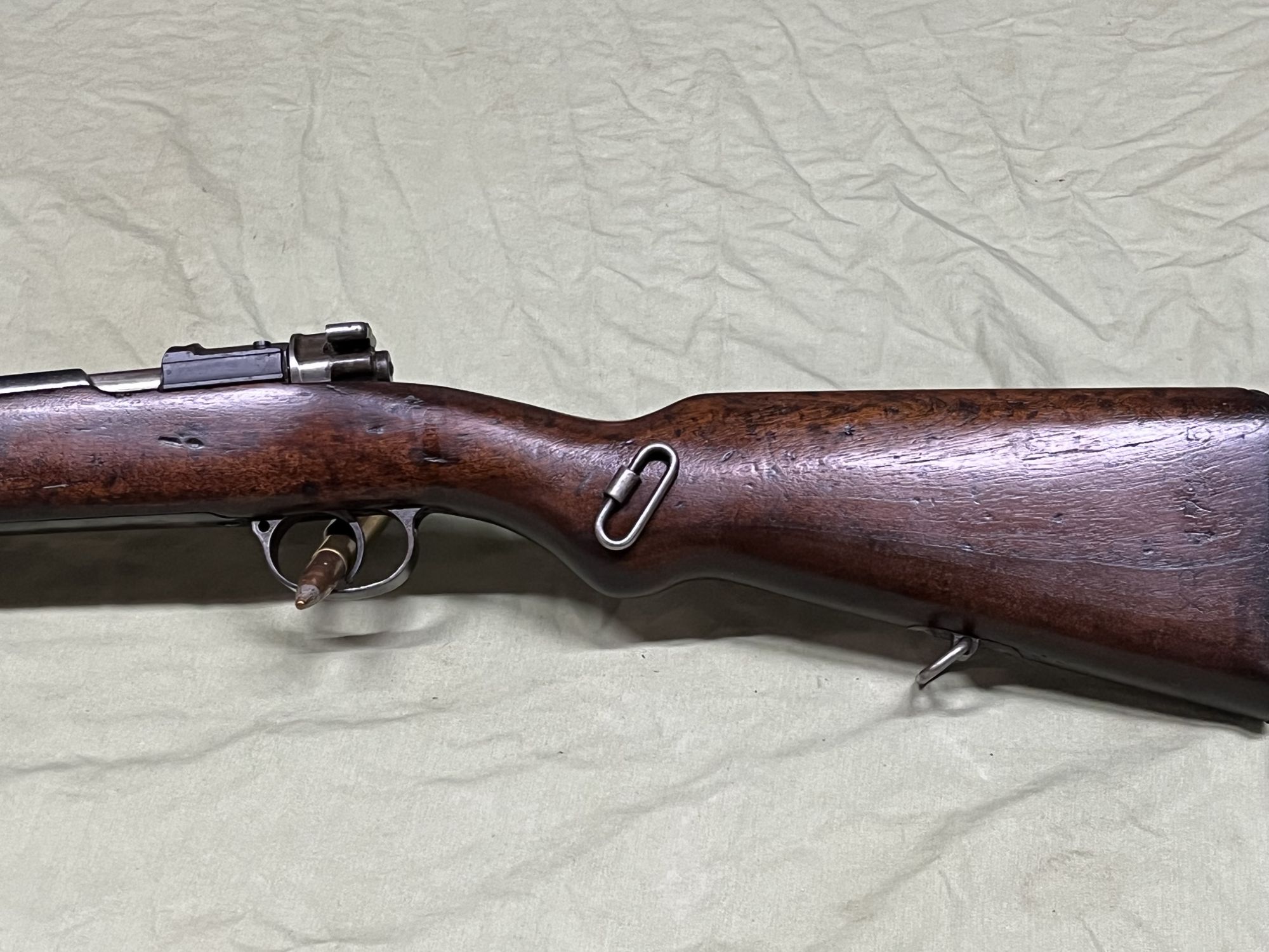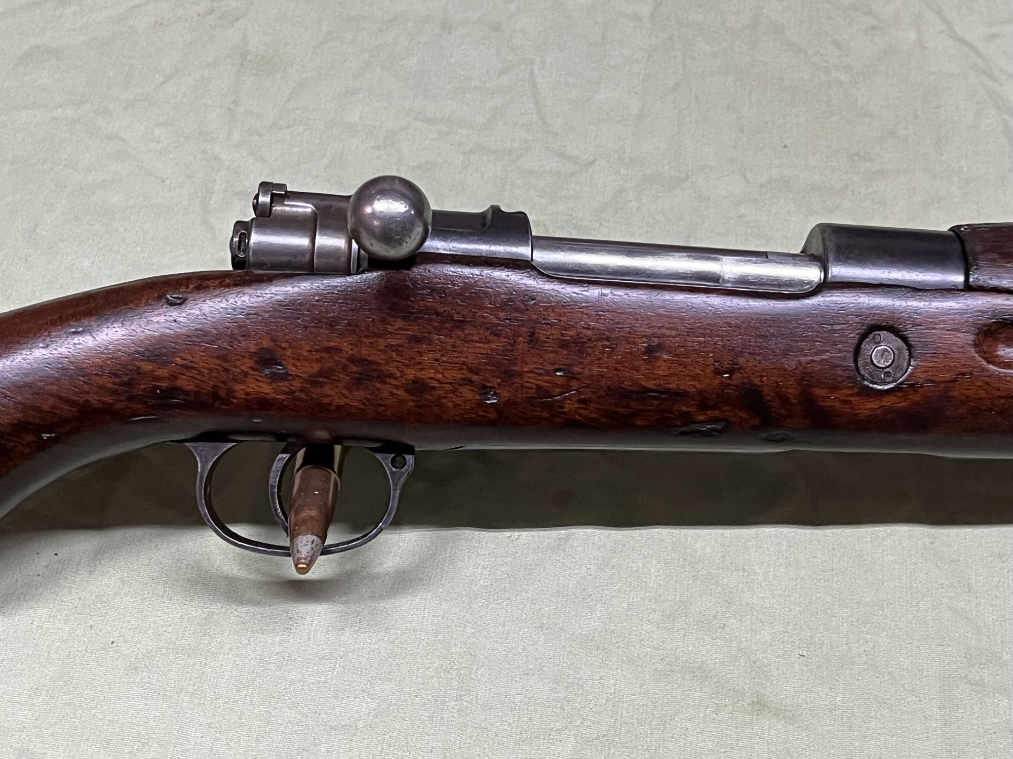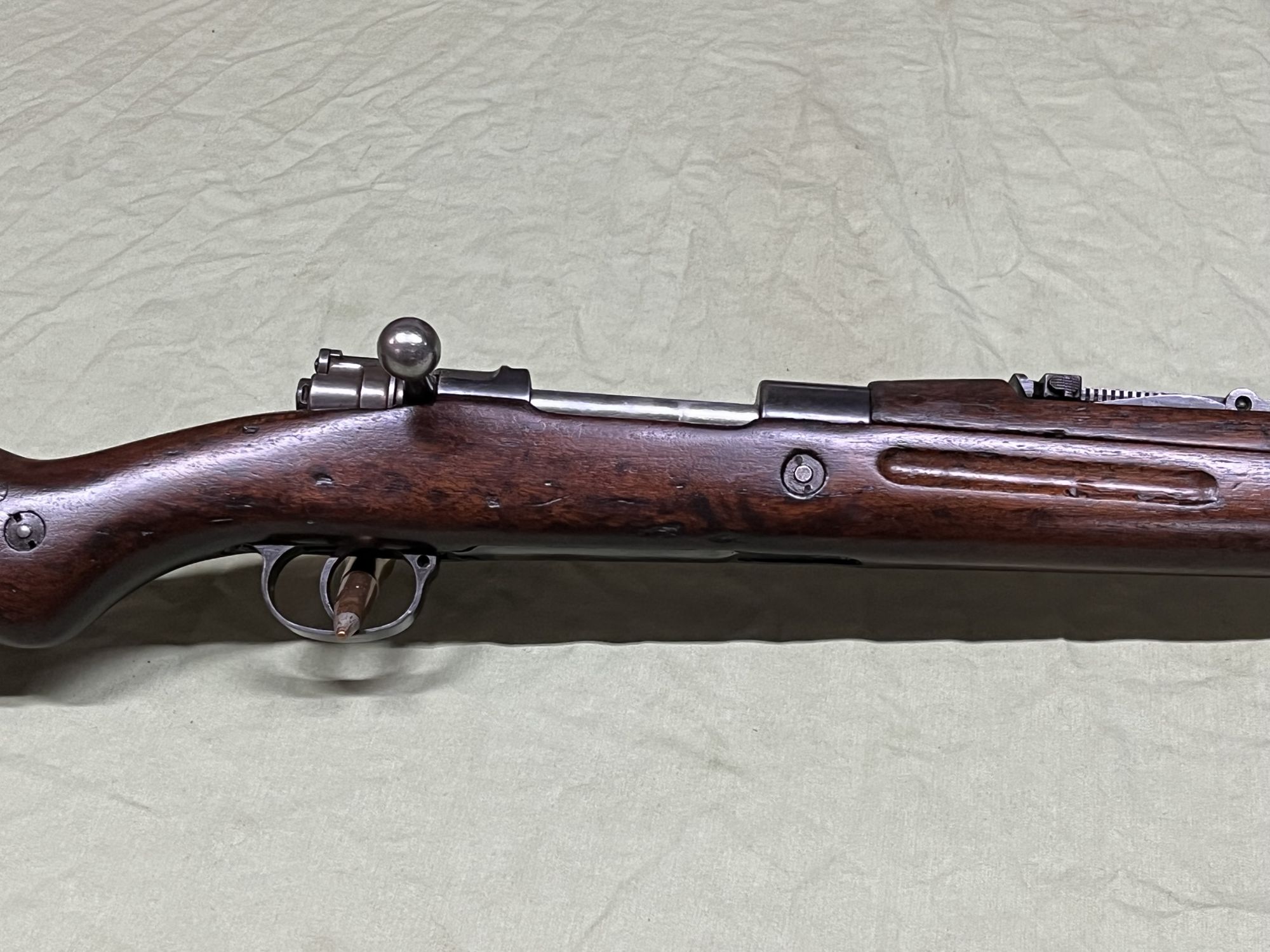 WW-II era un-cut original military Mauser, standard 8x57, war wear but looks good, nice dark walnut stocks, good bore, shoots well+(MONTROSE)