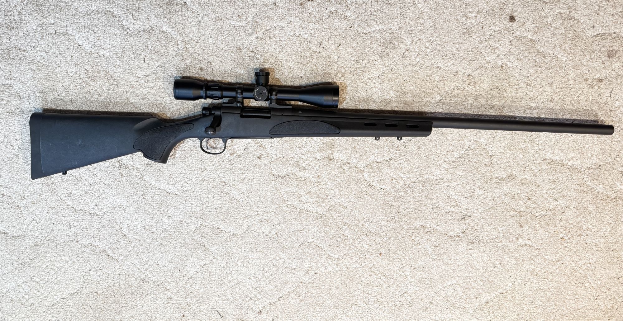 beautiful model, hardly shot, with 24" bull barrel & Cabela's Pine Ridge 3x9x40 scope, very clean gun, +(DRUMS)