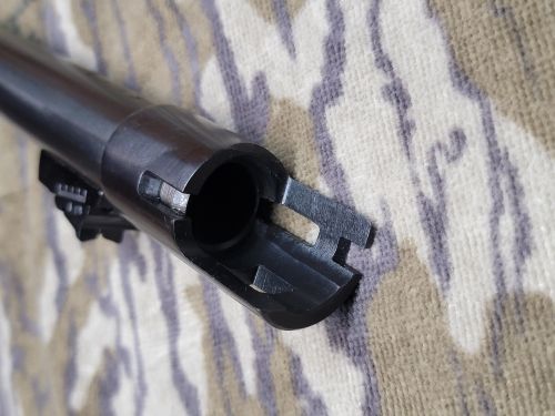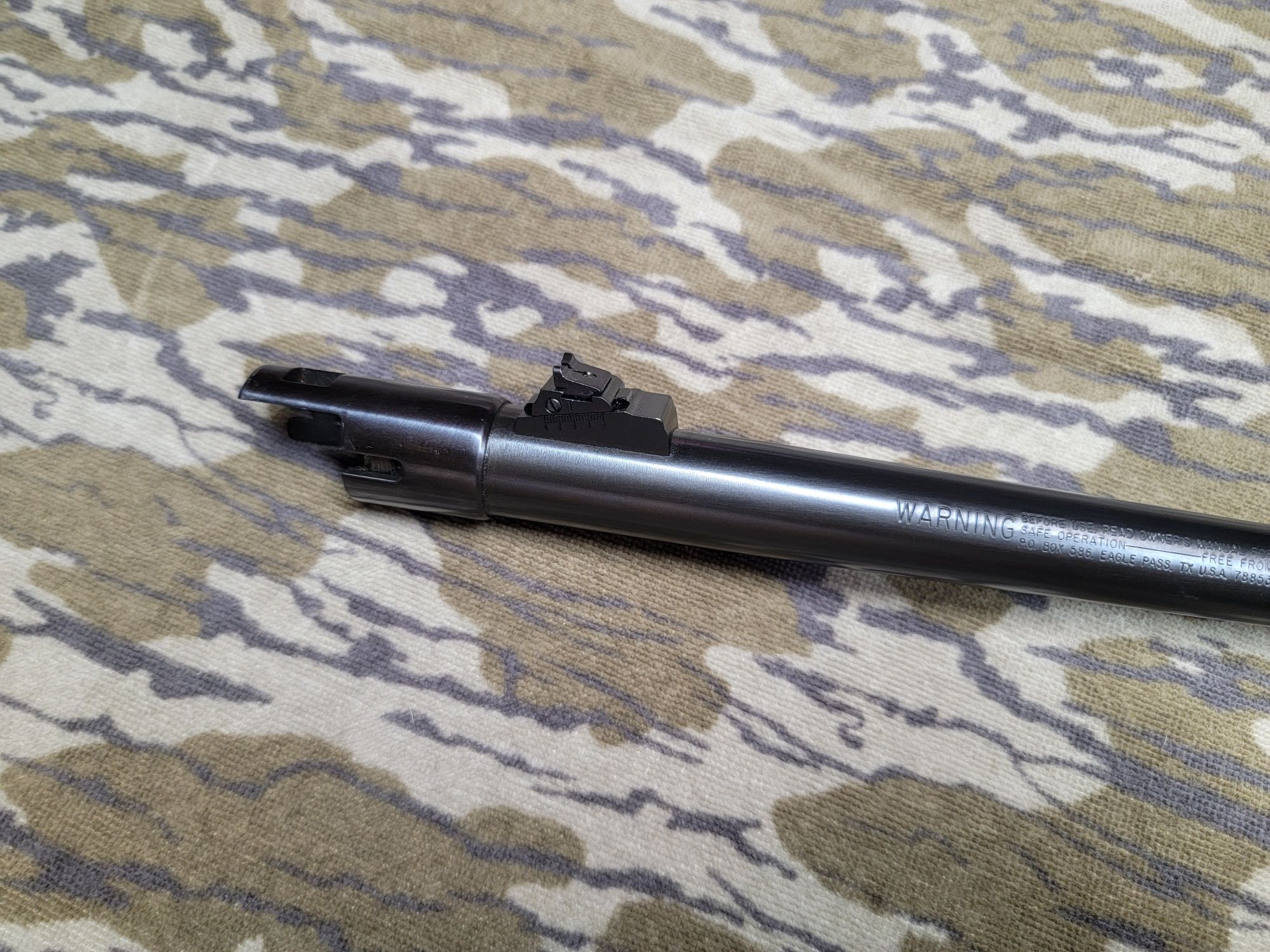 24 inch,. 3 inch chamber, blued finish, shows some light wear from use, slightly negotiable. +(BLOOMSBURG)