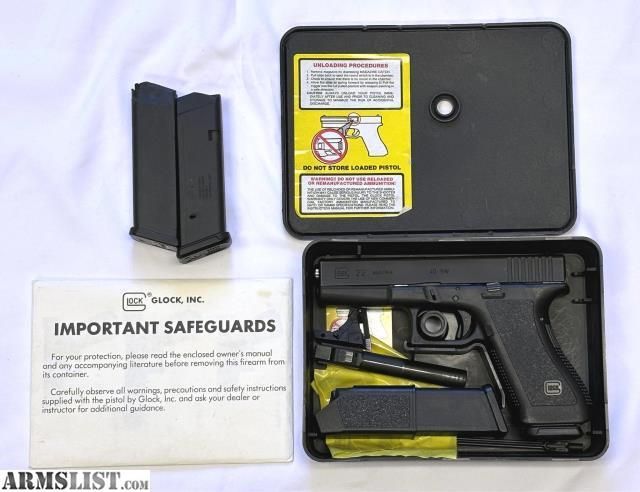 9mm barrel, 4 mags, original Tupperware box, very collectible, hard to find in this condition, 2-original Glock G22 15 round magazines which were manufactured prior to the 1994 magazine ban, 2-Magpul 17 round magazines, Storm Lake 9mm barrel currently installed, original Glock 22 barrel in .40 S&W, factory Glock magazine reloading tool +(DICKSON CITY)