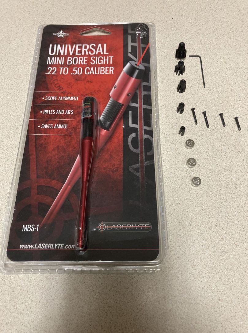 Laserlyte Universal Bore Sighter .22 to .50 CALIBER Comes with Instructions, Target , Caliber Attachments and Batteries EXCELLENT CONDITION! Purchased New! $20.00+(DURYEA)