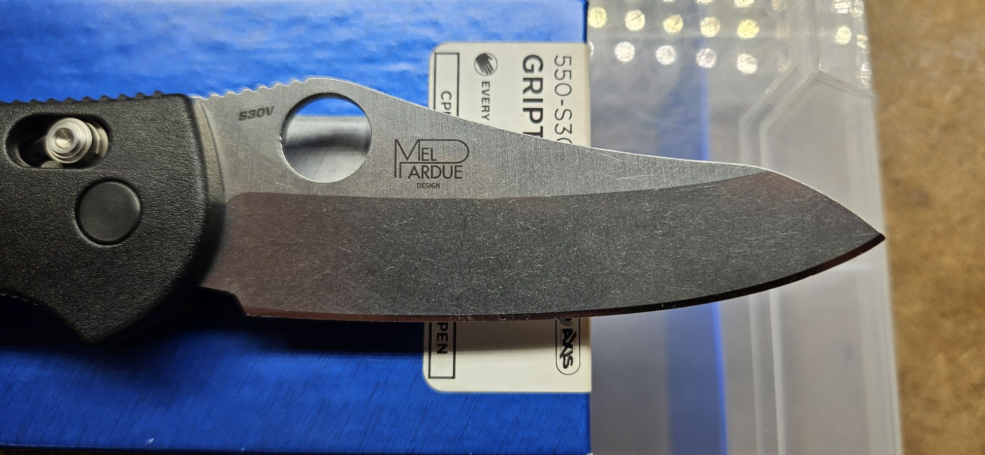 S30V blade steel with black deep carry pocket clip, new condition, call or text+(HARVEY'S LAKE)