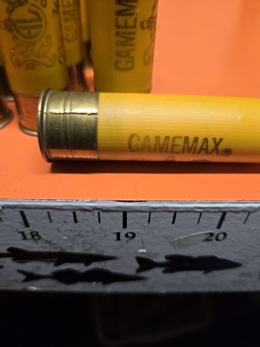 Alcan Gamemax, shotgun shells with boxes, full box, but 5 have split brass, may have been reloaded, Federal Monark, box of 15 loaded paper shells, original 16 gauge paper case slugs, 1 WZW, 1 Rem and 6 Federal. +(KINGSTON) Text