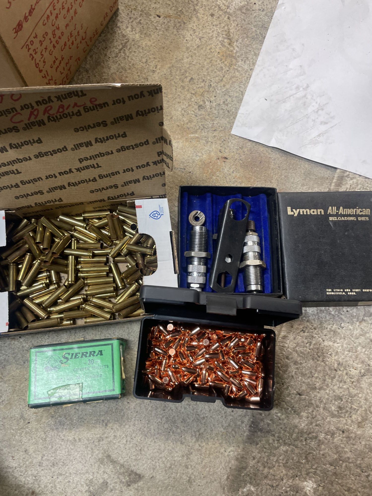 (200), approx. 350 110 gr. bullet heads, 1 box 30 carbine ammo +(HAZLE TOWNSHIP)