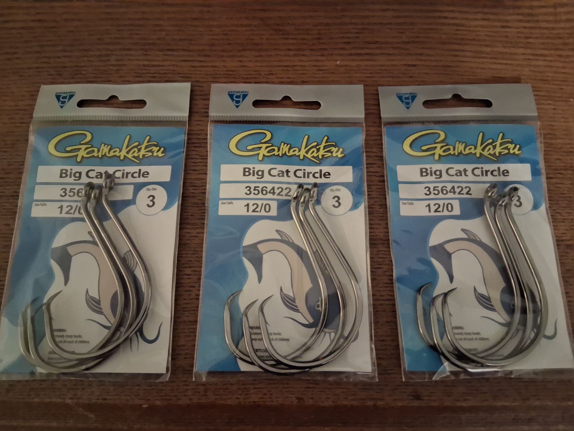 3-packs of 3 count 12/0 circle hooks. New in package. +(NEW MILFORD)