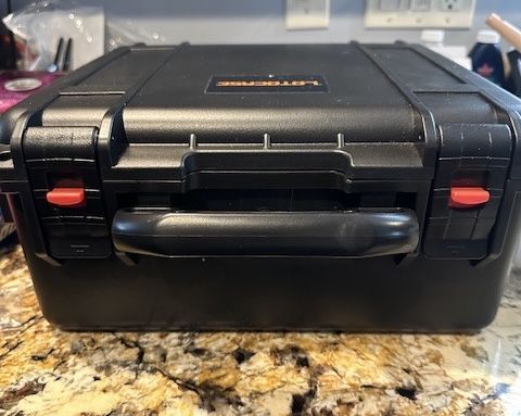 Can hold 4 pistols and 17 mags. I used it for 3 pistols and took the insert out to put my eyes, ears, ammo, etc. Locking latches. Heavy duty. +(OLD FORGE)