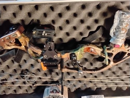 with Bohming quiver and sight, Tru-Fire release, GKF rest, Sims limb savers, Trikon aluminum hard case. +(NOXEN)
