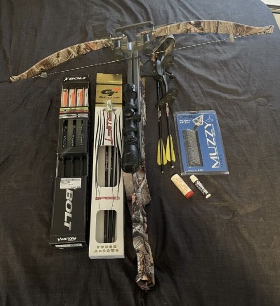 Great condition, brand new bolts and broadheads included, possible trade for firearms or a compound bow. +(MEHOOPANY)