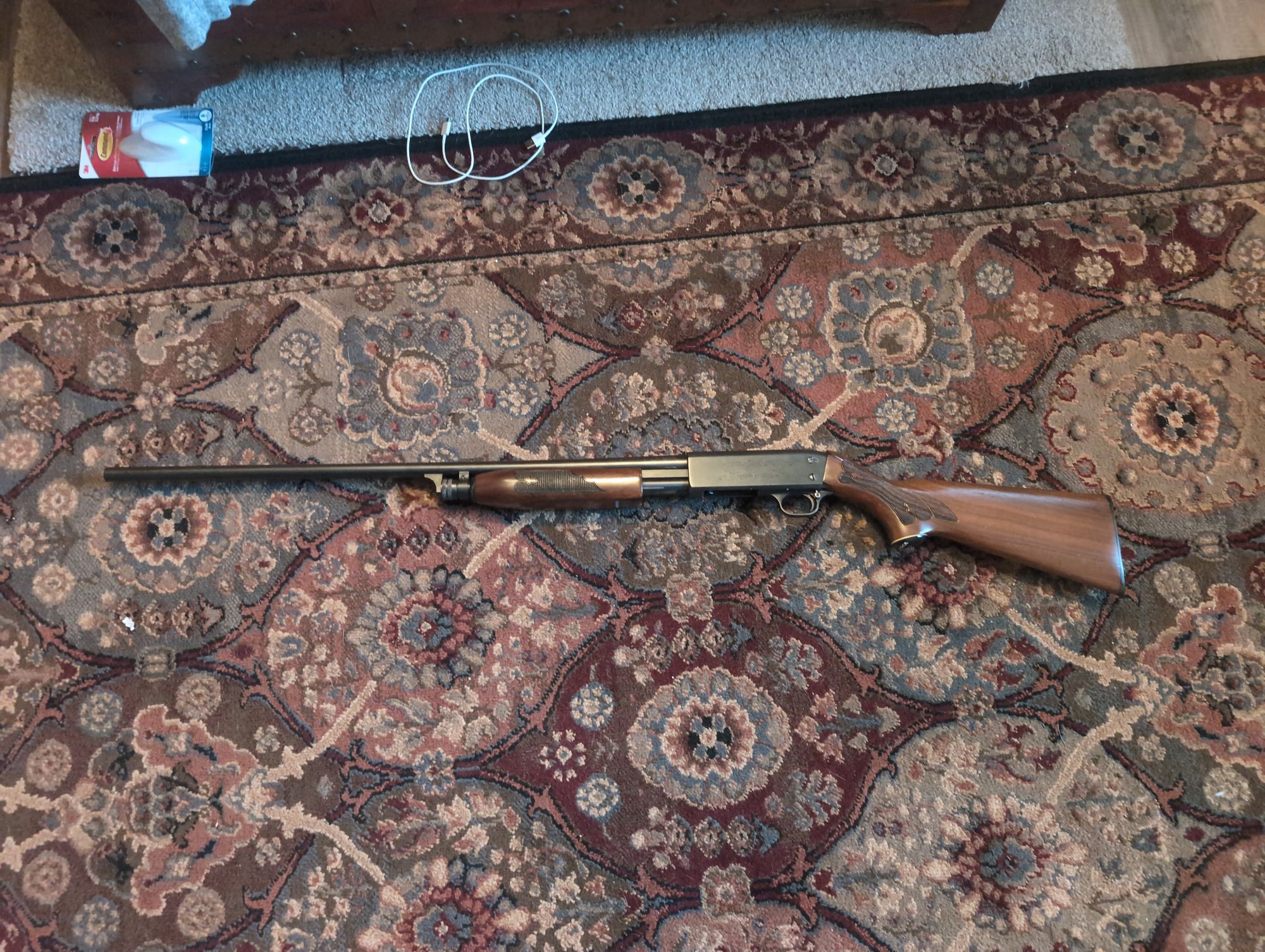 20 gauge, 2-3/4 shells, really good shape, fiber optic site with 20 gauge shotgun shells. Trade for 44 Magnum pistol. +(WYOMING)
